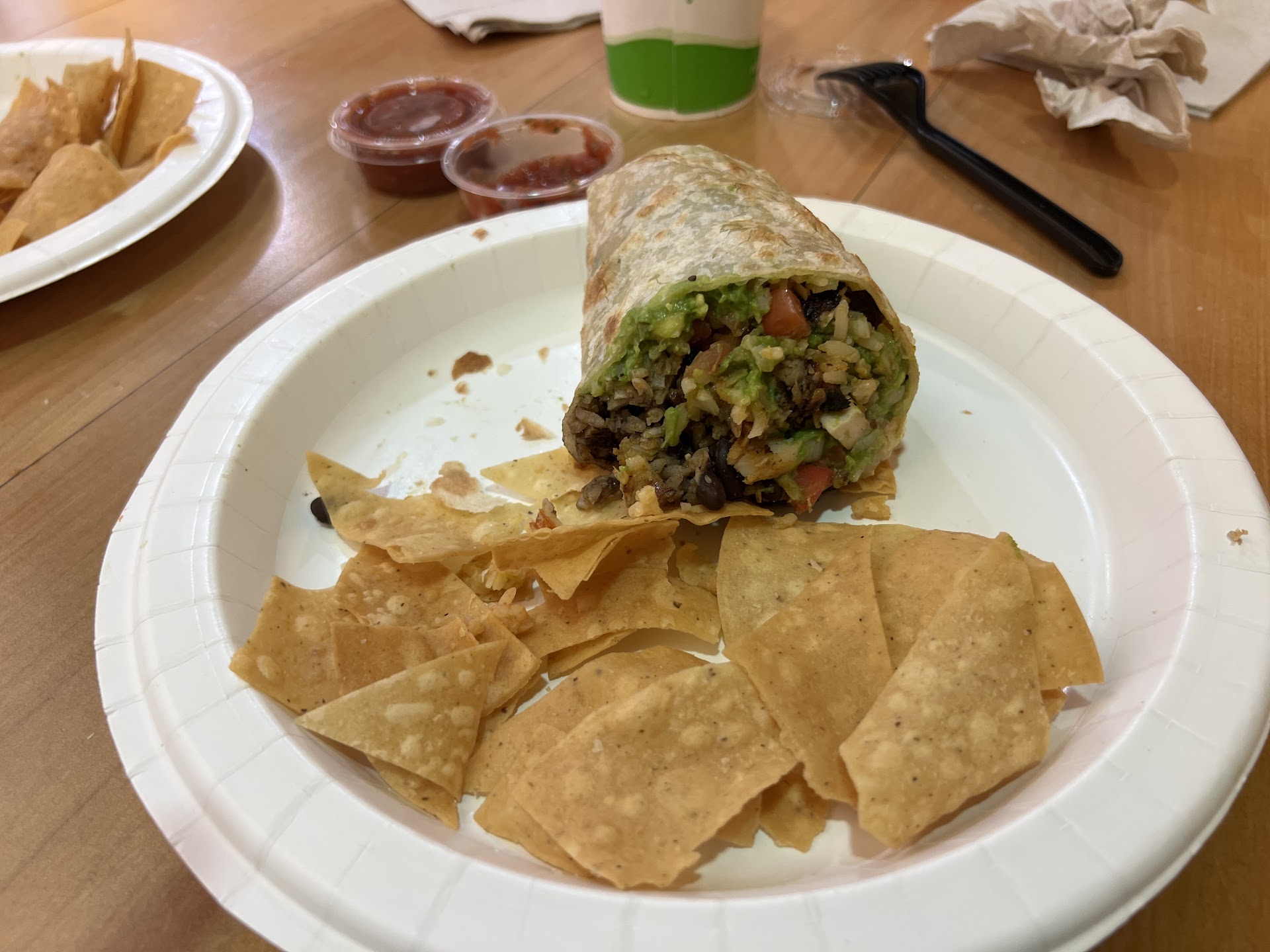 After paying for our meal, we took a number and found a table. They have a salsa bar, so we got our salsa and sat down. Our food was on the table in about 10 minutes.