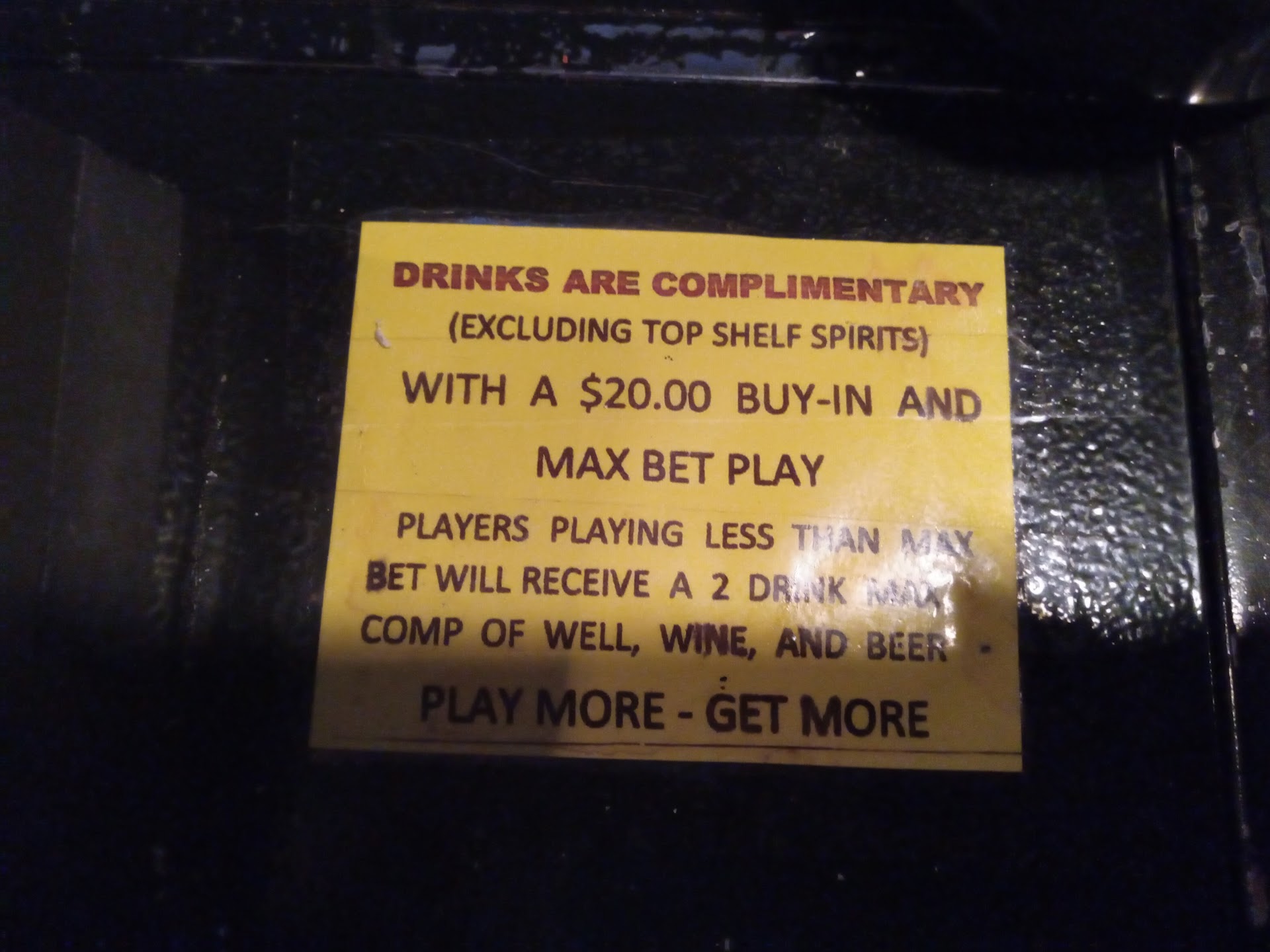 Read moreTayler is the worst bartender she stands around chatting with guys only and will ignore you if your gambling and need service. Have been coming here and gambling for 3 years never seen her before and she charges for comp drinks there's a sign tha Cleary states max bet u get 2 drinks per 20 and she gives u soda and charges and claims to call Carmen the manager. We love Carmen and Andrea they r amazing. We were literally planning a huge party's for 2 bdays this bar will be losing lots of money due to having the worst staff member Taylor. She rude and if you watch your cameras you will see her standing around with a guy chatting most of the time. No wonder the bars empty tonight she's terrible with service and scams the bar...