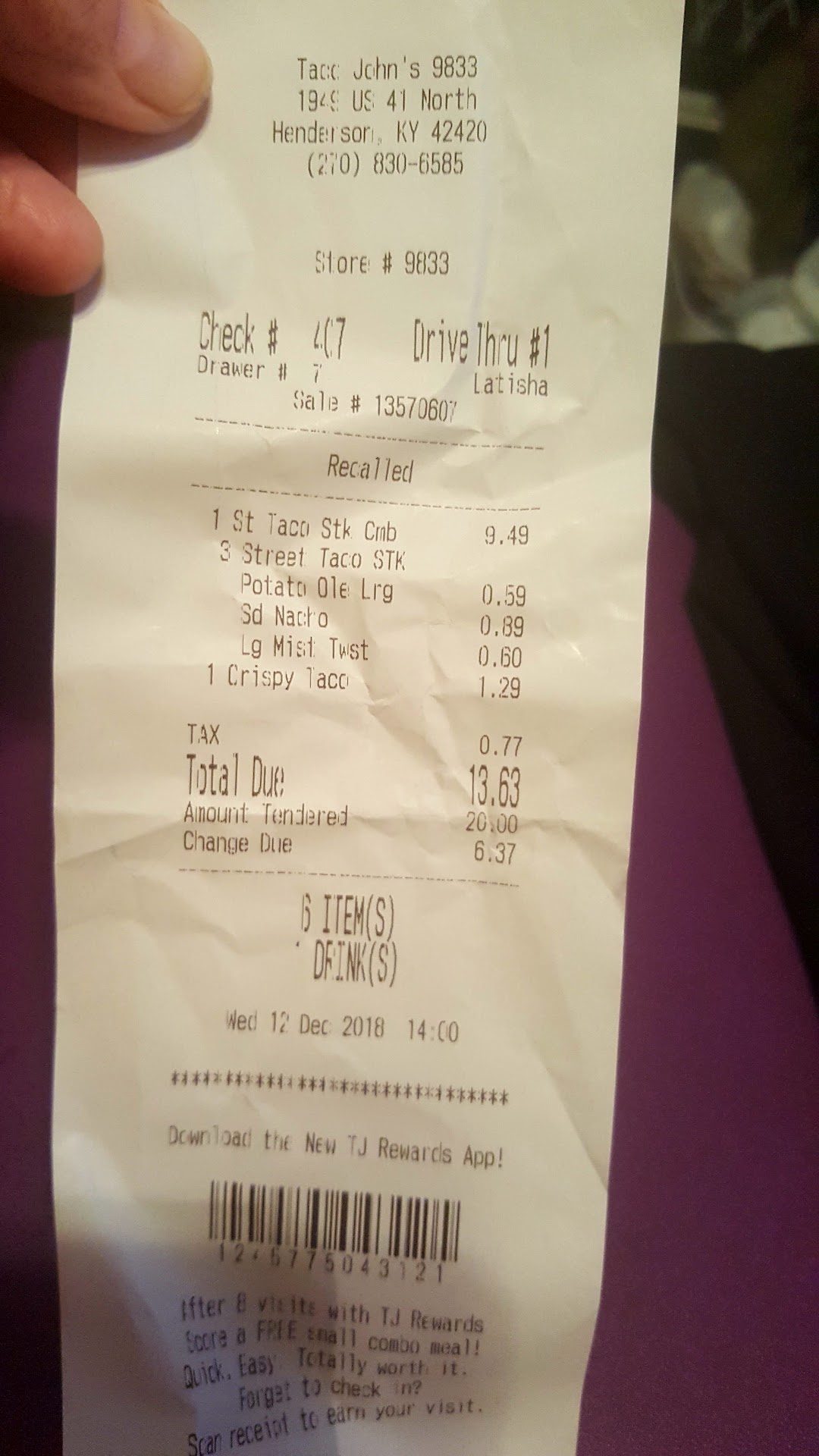 Read moreUsually love Taco John's but this experience is one that I wish I could have taken back. The first thing I noticed when walking in was that the restaurant was a complete mess. The floor was sticky and everything that I interacted with was grimy. The kitchen looked like a bomb had gone off and it was not a great first impression. The person taking our order was nice enough, but kind of seemed out of it. It seemed like 2 out of the three people working at the time were high or something. After getting our receipt, the total seemed a bit high. Talking to the person up front again it seemed like the stuff that they were charging for was not super well communicated, but ultimately was not their fault just bs company policies. Upon leaving the restaurant, we found that we were missing both of our orders of potatoes, even though there was one of the designated workers exclusively on that station. Thankfully I was able to go back inside and get those quickly but after the presentation, confusing charges, and overall subpar customer service I was regretting stopping there. I would not recommend...
