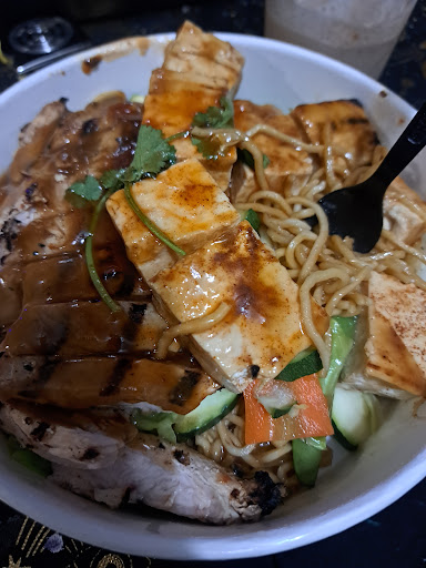 Unfortunately, the food didn’t redeem the experience. The protein was overcooked and completely lacking in flavor—dry, tough, and unseasoned. The vegetables were undercooked and hard, closer to raw than anything enjoyable. The rice was equally disappointing: dry, bland, and clearly not fresh.