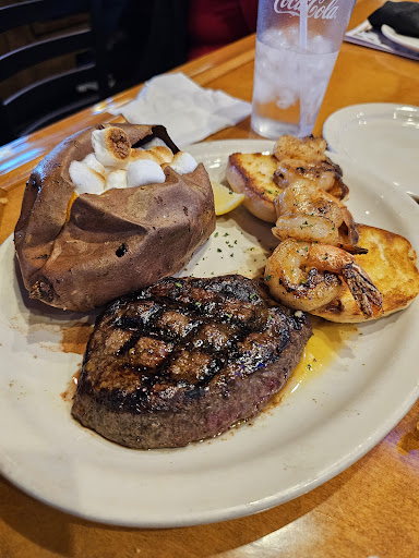 Arriving the parking area was very full, always a positive sign! When we walked up (around 4pm on a Friday), there was definitely a wait for a table or booth. The reception area informed us that we could get seated right away if we chose to sit at the bar so that's where we went. The 2 bartenders were very friendly and attentive. Within minutes of sitting down we were seevrd out drinks and orders taken. At that point the bread basket came out. Mind you this is our first time here and we were told how delicious the rolls were. No one raves about rolls, right?? I'm not sure what they're doing to them but I could NOT stop eating them lol. The bread was so pillowy soft and served with this delicious cinammon Whipped butter that melted right when it touched the bread. I received my salad and chili and both were very delicious. The chili stood out as it wasn't covered in grease. It was a well balanced chili with meat. The oh so delicious bloomin cactus came. We realized how perfectly cooked and coated this onion was. Most other places that offer an onion like this are nit properly seasoned or coated. When taking a bite, you don't pull out the whole onion strip away from the coating. This one is just right, the flavor of the breading has this very pleasant and lightly spicy white pepper flavor. Yummy!! The 8oz sirloin steak was cooked to perfection! Nice and medium rare. I asked for a side of horseradish for my wife and I to share (the offer Raw and creamy). And quite honestly, the steak was perfectly cooked and seasoned that you really don't need a sauce because it's so darn juicy. I can't believe I almost forgot to mention how utterly heart stoppingly delicious the sweet potato is!! Yes the marshmallow crispy gooey topping is delicious but they add some sort of brown sugar or honey to the potato that makes it so, so.....DAMN!! I've never raved about a sweet potato before but DAMN! I need another one! Overall this place is an establishment we will definitely be visiting again. I forgot to mention the ambience, while dining we chuckled as the radio grew louder on volume. The song "Footloose" was playing and the whole staff broke out in dance lol. We definitely were not...