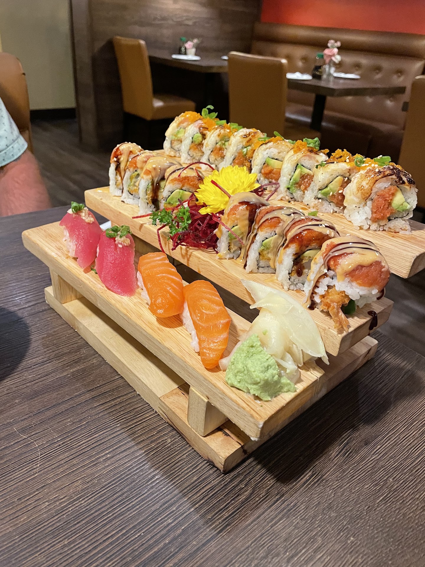 Read moreThe restaurant was beautifully decorated, clean, and welcoming. They have so much to choose from as well as a lunch menu and daily specials. We all ordered items and shared. I ordered the salmon roll and the salmon was fishy tasting so that wasn't pleasant at all. We also ordered the prime rib entree and it was delicious. The sauces it came with were unique flavors and I was dipping and then poured it all over the huge pile of ribeye,cooked to perfection. The ribeye was juicy & the best I've ever had at a restaurant. We ordered appetizers: Eel rolls, wings, & cream cheese wontons. The chicken wings were also the best I've ever had and it was to die for; tender juicy and coating was beyond delicious. I didn't eat the wontons but they said they were good and ate them all. The eel rolls were eaten by the fan of eel & he said they were good but pricey. I told him we don't have much eel around LV 😂. The wait time was long but we were patient hoping the food was worth it and weren't disappointed. I couldn't drink because I was the designated driver, but I would've loved to because the prices were reasonable. We paid $96 for 3 main courses & 4 appetizers. I would definitely come back here again, & again. So...
