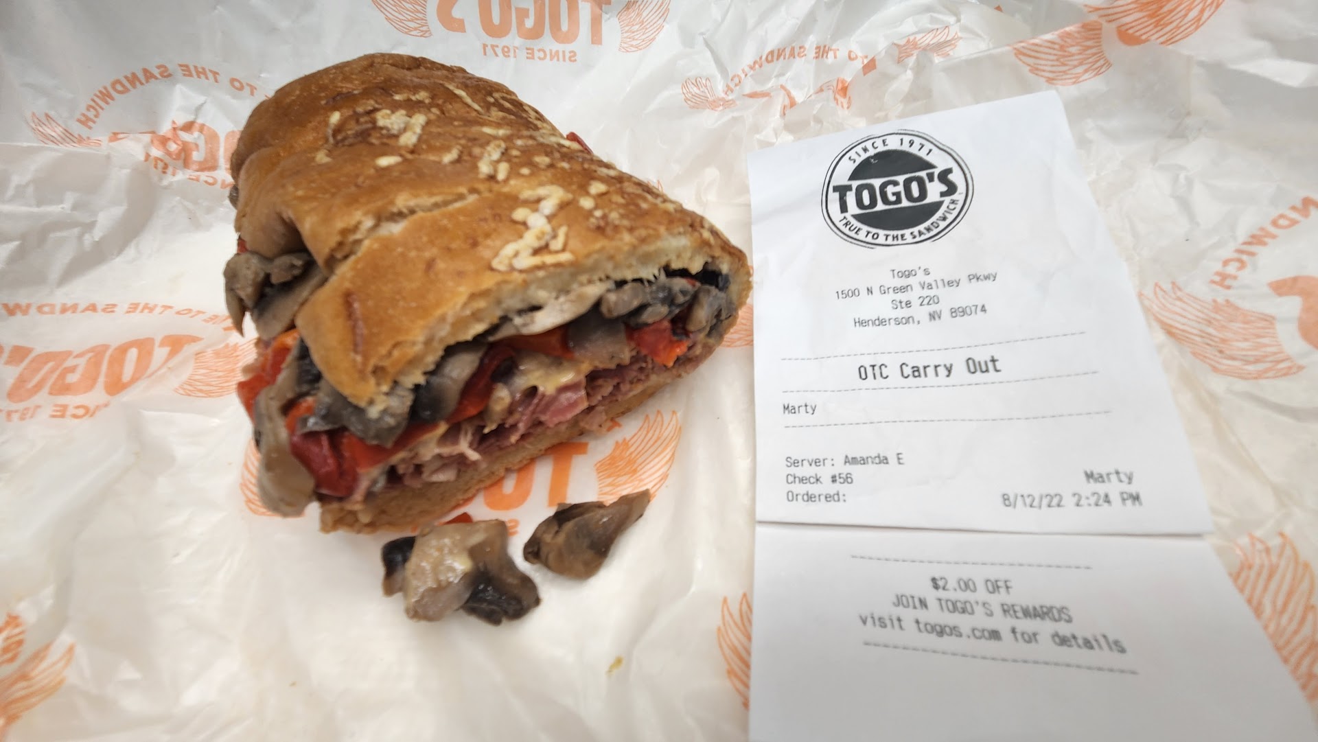 We were SO excited to see a sign that Togo's was in Henderson. We moved from the Bay area 8 years ago and were thrilled to have a taste of home. We walked in, my husband went to the register, and I went to the Kiosk. I was going to call my husband over, when he said to the ( I am assuming ) manager at the register, that we were so excited for Togos, it had been 8 years. The Manager stopped him there and went on to say " You and everyone else in the state.". Clearly annoyed. We hadn't even ordered yet. When we walked in, there were 10 plus other customers who had ordered and were waiting for their food. We expected a wait, and did not mind in the slightest, we were pretty much giddy that we were getting Togos. The manager went on to say there were a lot of people in front of us and it was at least a 20 minute wait, blah blah blah. He was clearly VERY grouchy. I don't know if he was angry the store was busy, or that people from California were happy and making the store busy. I don't know, but he was a rude bummer. We hadn't even ordered yet, and all he did was rattle off grouchiness. Thankfully, the rest of the staff was amazing, the other customers were fun, and we got into a couple "Togos" conversations with other customers. We waited about half an hour, but didn't mind at all. It's a 9 hour drive back home to get Togos. Half hour wait was a breeze!! The food was just as we remembered, and we can not wait to go back. After Covid we keep hearing how the economy, and food places especially are struggling, so for the manger to be so angry that they are crazy busy since opening seems weird, and like a problem a lot of people would love to have. We will continue to go back, and just try to avoid him. We are so happy to have a Togos in town. ( But we do miss the BBQ...