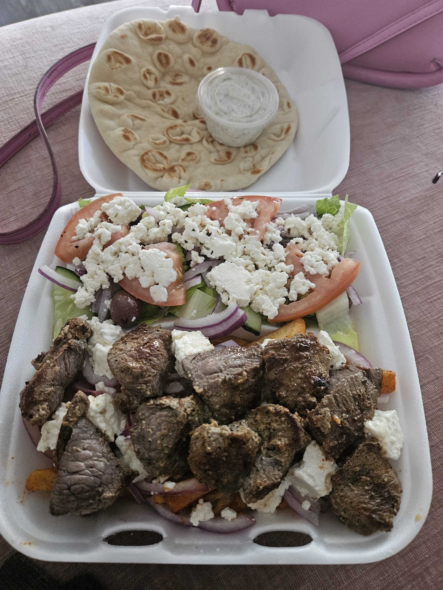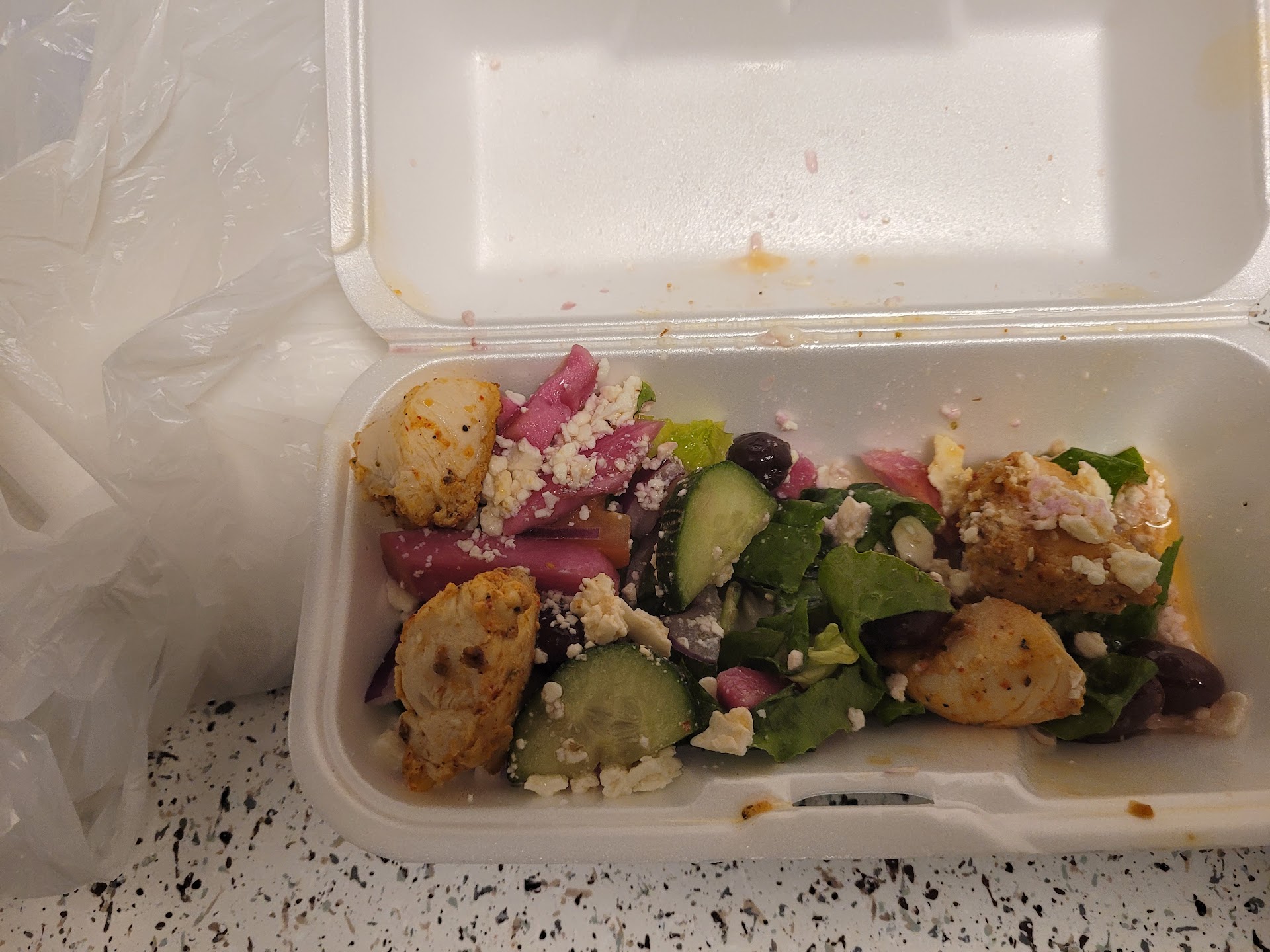 Read moreAN ABSOLUTE DISGRACE. I live in the community and visited this place a couple times because it's close to home. It's pricey, more than the other Greek places in the area and I had a horrible experience. I ordered a medium Greek salad which I've ordered before. The salad was 9.99. I added some chicken (5 small pieces) and some pickled turnips. Suddenly it was now 19.50.đł But I'm starving so I pay. I get my salad and the bag is awful light but it's cold so I head home. Get home only to see that they have shoved the salad in a hotdog like container. Not at all the size of a medium. They either ran out of the original containers or they are downsizing and upcharging. Im going with the later. This was a disgrace, soggy, cold chicken and barely any turnips that i got charged 5 extra dollars for. Additionally , the cook is dripping sweat all-over the food while it is cooking. All of these things, a huge turn off and unsanitary. I will never return or suggest this place. How tacky to take advantage of the community with over inflated prices and subpar food. Stephanos is...