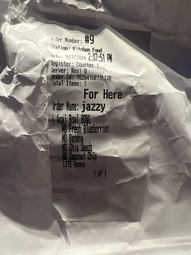 We get home to the "Chicken cheese 'Dilla", having NO chicken and barely ANY cheese. Mainly just tortillas. š The Smoothie was poorly made, mostly slush. The Chicken Pesto was slapped together and chewy. The Acai Bowl was the only good thing. š