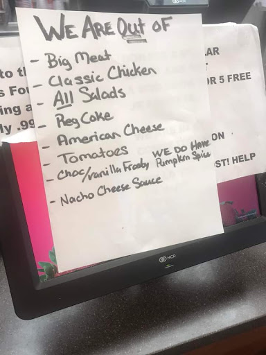 Read moreI got here and saw the line. Not bad, but I decided to go to the restroom before placing my order. I come back and all the same people are waiting for their food. One said she had been waiting 20 minutes before I even got here. The employees were very friendly and working very hard, but all of the orders were going out at the drive-thru. Dining room was obviously not a priority. According to the time stamp on my receipt, it was 12 minutes for me from the time I placed my order and the time I got my food. The burger was fine, but the fries all have what look to be charred, burnt crumbs all over them. Not pepper or seasoning. Another customer asked about it and they told her they were all like that and could do nothing about it. (Clean your fryers?) And yes, they make the fries taste burnt. This place is also highly infested with gnats. There was a big swarm around the drink machine and ketchup dispenser, and also several in the dining area on the opposite side of the...