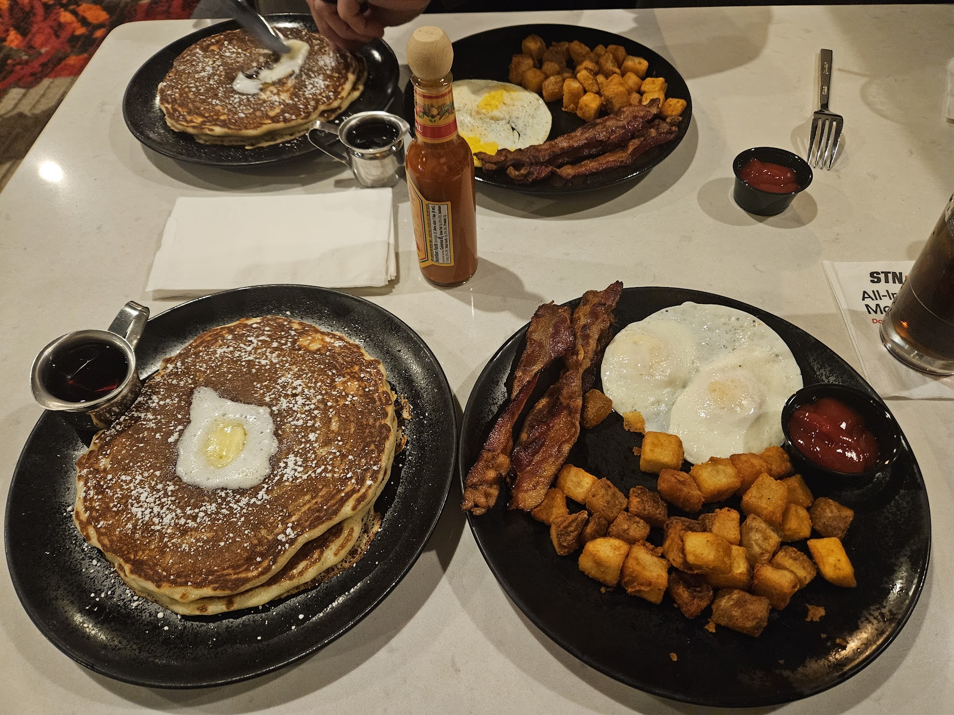 Ā Ā Ā Read moreWe decided to try this place since we drive by all of the time. The breakfast is good and the pancakes are huge! The service needs serious improvement. A security guard walking around_doing rounds is the one who actually seated us. There were only 2 tables (including us), yet our server was never around. It took a long time for her to come to take our order, and once we got our order, she never came back to check on us. We had to track her down to pay the bill. I noticed the other table had to track her down as well. We do plan to give this place another chance, because we did like the food and we're hoping the service is...