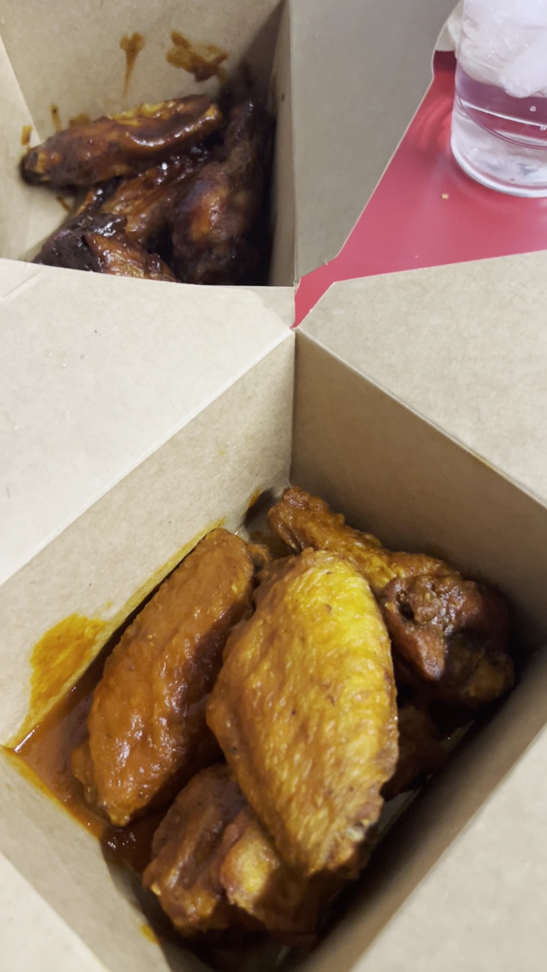 We stopped in and ordered. We both had the 5 wings. I went with their bbq sauce. My wife went with the mild Buffalo sauce