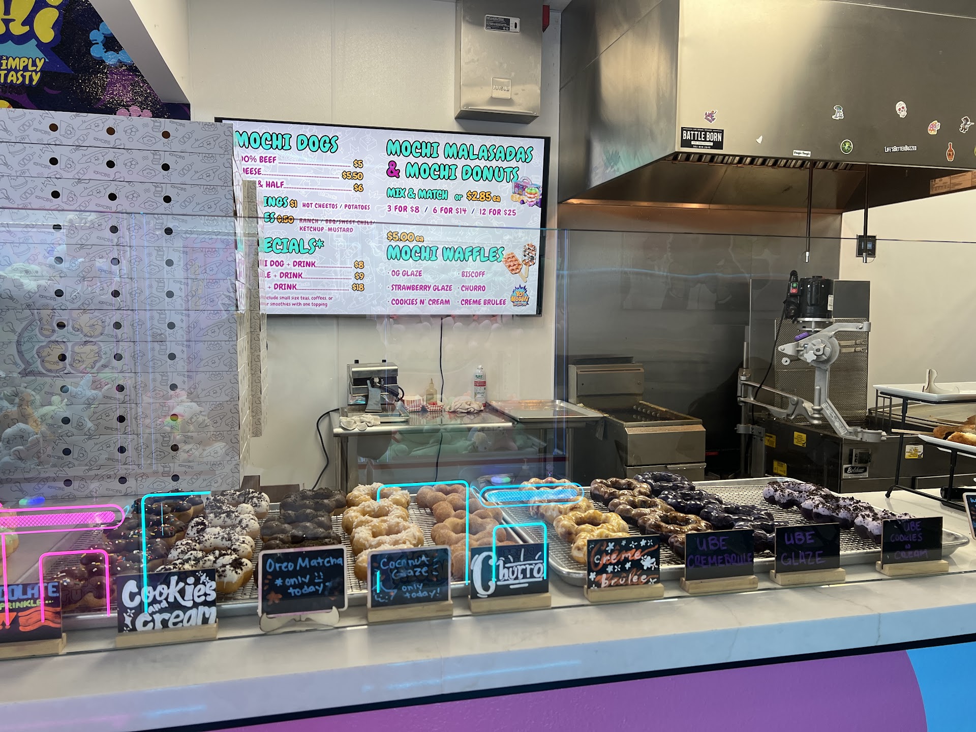 Read moreIt was a new kind of experience to me. I’m not sure if all Mochi Donuts taste the same or if some places are better than the other. But as far as fry dough, that’s flavored with different things it tasted amazing. It has a chewy or texture than normal donuts. We went on a Tuesday and they were having a buy one get one. My favorite one was the crème brûlée. I’m gonna have to try another mochi donut place to truly compare. The atmosphere reminded me more of something that was for teenagers if that makes sense. They have little arcade games and like claw machines. It’s not a very big place. But six donuts ended up costing eight dollars because of the special that they were having. I’m not sure if that’s some thing they do every Tuesday. We went around Noonish. I will say that the young lady that worked there was very nice and patient. The boxes that they come in are super cute. They look like a little boom boxes. So a very cute little...
