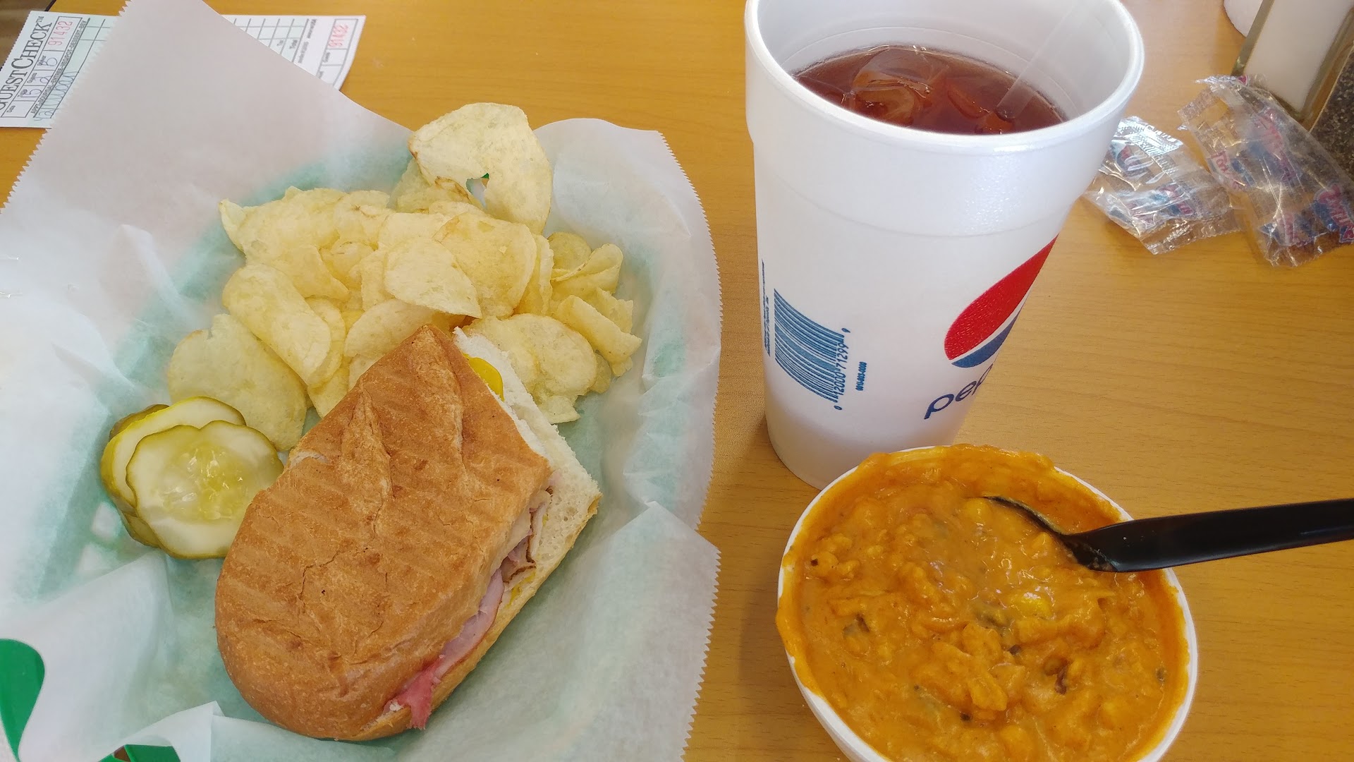 Read moreI really want to love this place, but I don't. I've eaten here 5 times. I like a good deli and wish this place was it, but it isn't. Highly processed and salty meats. Overpriced for what you get. If a Jason's Deli, Jimmy John's, Which Wich or other deli opened nearby this place would fold. It's been here quite a while and is popular with "regulars" and seniors. There is a 4% upcharge to use a credit card. Napkins are just a roll of paper towels on the table. Twice I've wanted a pastrami sandwich but they were out. What? A deli out of pastrami??? Menu says there is a salad bar - there isn't. Men's restroom.... I was going to only give 3 stars, but I want to support this...