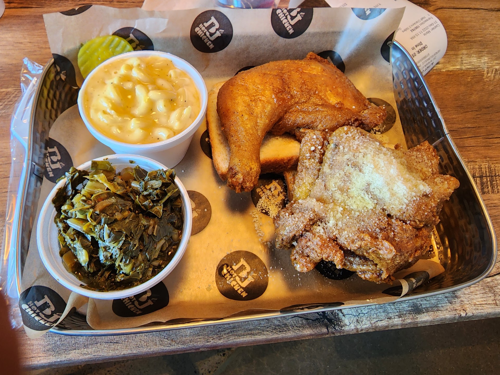 Read moreB.J.’s is a very nice place to get some good hot chicken. I bought two leg quarters mild and they were fresh, hot and had a very good taste to them. I love Prince’s Chicken but they are so far away from where I live but B.J.’s is right down the street from where I live so this is perfect for me. I called in my order 2 hours ahead of time and they called me back right before time for me to pick it up to tell me that it was ready for pick up. I was really shocked that they answered the phone when I called to place my order because the other hot chicken restaurants like Helen’s won’t even answer their phone so you can even place an order!! I think I’m really going to love this place!! The employees were very friendly & the restaurant was very clean when I went inside to pick up my order!! Great...