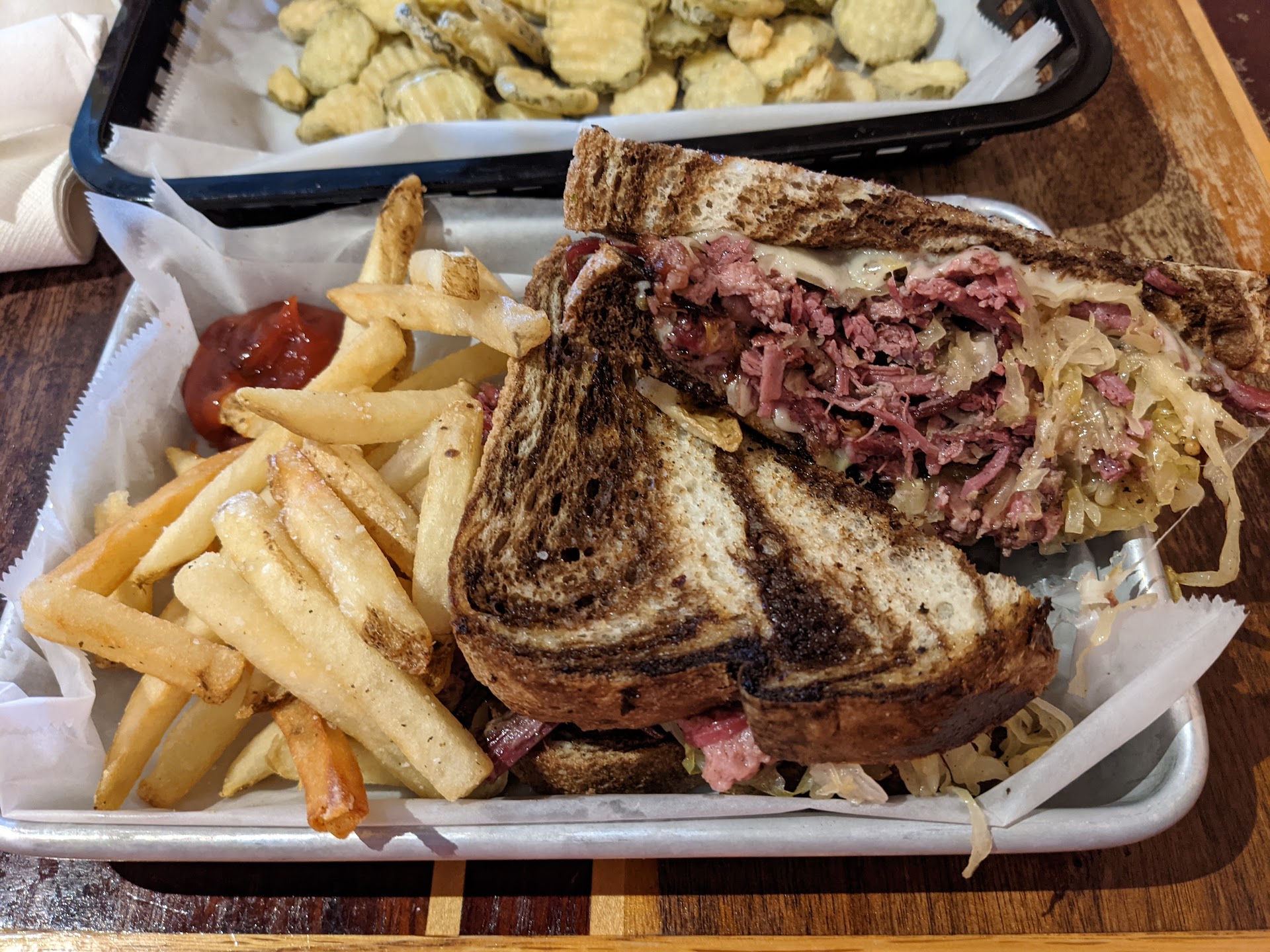 Read moreAte with friends during lunch time and we were served promptly. Orders were all correct. The place has a nice atmosphere and friendly service. The restaurant was noticeably VERY cold, as if no heat was on, so that actually took away from our enjoyment a bit. I didn't particularly like the fries and wouldn't order them again given the choice, because they were just meh, totally flavorless. I noticed that a friend didn't seem to want hers either. We bet the sweet potato fries would be a good alternative. I thought the classic burger was good, and especially the bun. It was fresh, cooked just right and was as good as you'd expect but not better than I expected for the price. My friends ordered bison burgers and were both pleased with their burgers. The bathrooms were definitely not in good shape at all! I was surprised that the owner had not dealt with the poor condition. I think it reflects quite poorly on the operation as a whole because if the bathroom is THAT run down what is going on in the kitchen, behind the bar etc. Just left me with an awful impression of the place. My friend absolutely loves the place and made it her first choice for our lunch, but for me it just didn't live up to the hype, the expectation and completely failed to provide an acceptable restroom for the employees and the customers. The fact that it felt like the heat wasn't on certainly didn't help. Sorry, but I think based on my first experience I wouldn't be...