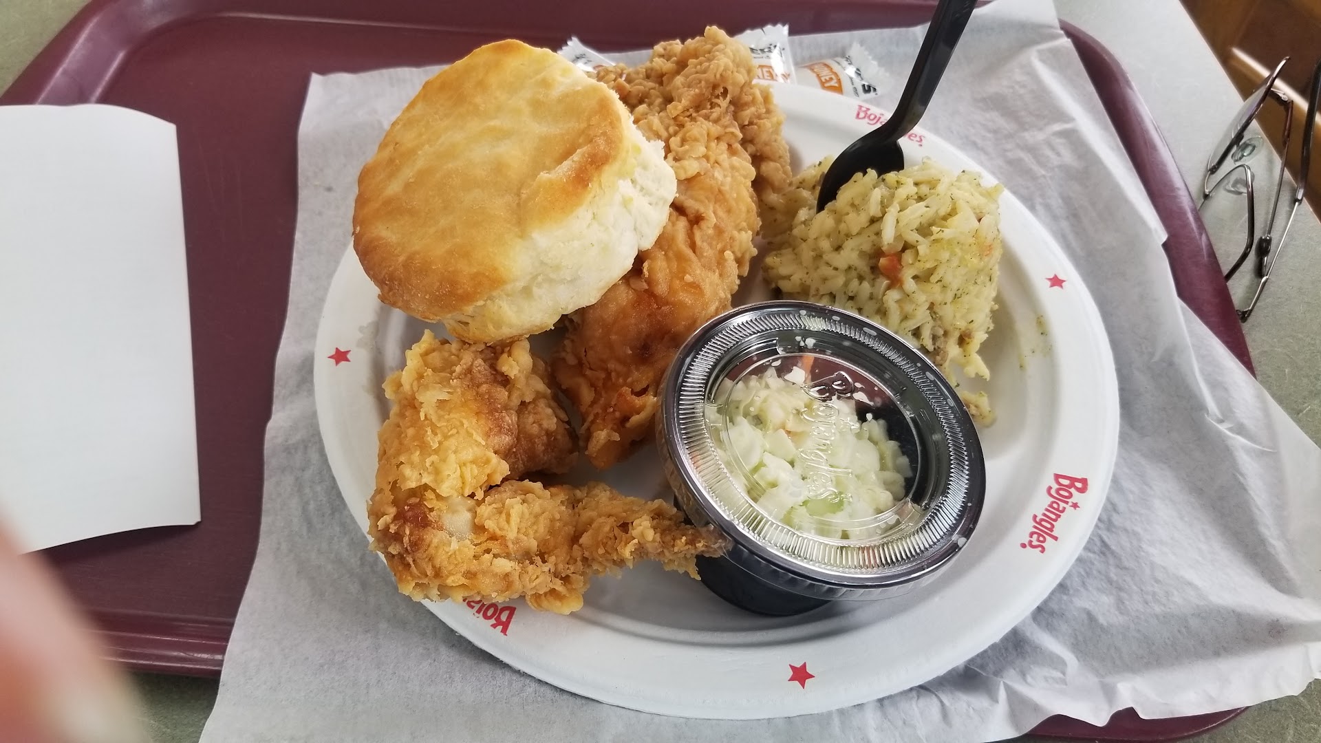 1/7/2025: Still good food at bargain prices. Great chicken. Large pieces. Slightly spicy, but just peel the skin off if you don't like that. Fast service. BARGAIN compared to most fast food places. They DON'T ask for a tip when paying. Sides are good and typical sizes, not huge. Fresh biscuits. Ask for honey. 6/22/23 update: Food is good, but chicken pieces and sided are small than 2-3 years ago. Lids don't fit the cups. Ran out of dark meat. Dining room sometimes closed due to lack of employees. They forgot part of our order. Prices up. I removed a star.