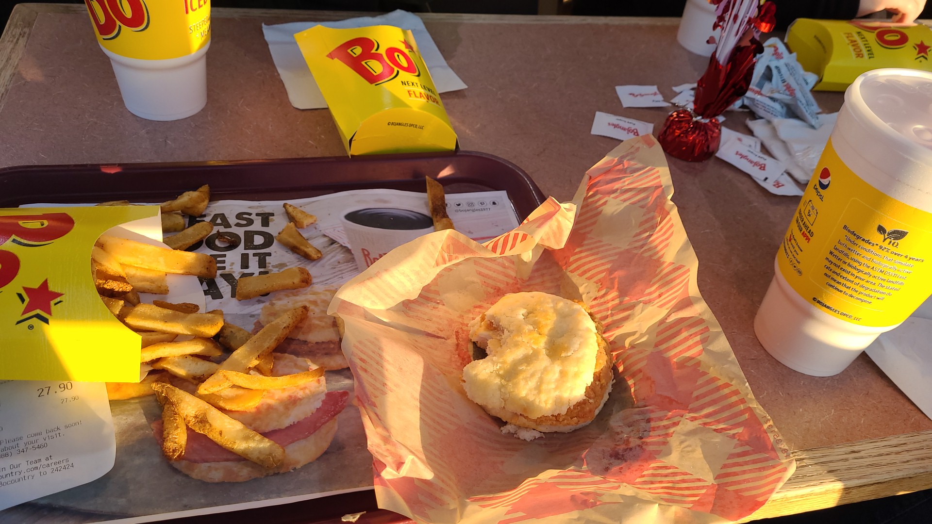 Read moreWhat I witnessed at your establishment was not a restaurant but a pit of filth and failure that should never have been allowed to bear the Bojangles name. Every aspect of my visit was an insult. The service was slow to the point of mockery. My order of a four piece Chicken Supremes combo took fifteen minutes and still arrived butchered, the biscuit absent, the fries limp and half cooked, the entire tray reeking of negligence. I was made to sit at the window as if invisible while your joyless attendants slouched inside and refused even the most basic acknowledgment of my presence.