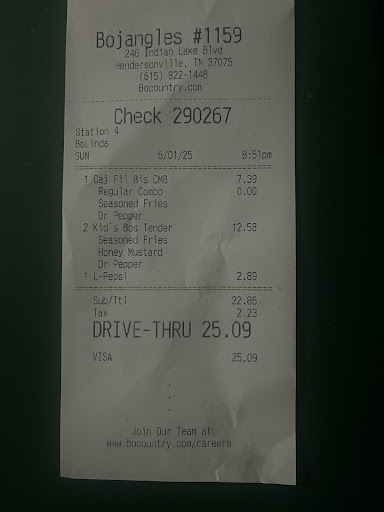 I politely explained to him that it was hair in my biscuit and I showed him the hair and he loudly said to me in front of my 10 year old son that I “Always” have a problem with their food. I then told him that wasn’t true and I wanted to show him the hair in my biscuit. The general manager clearly saw the long string of hair imbedded into the biscuit and said that he only saw a biscuit as if he was mocking me or something. This General manager tried to argue with me in a loud and aggressive tone instead of rectifying the issue. I asked for a refund; yet, the manager stormed off from my vehicle stating that he will get me another biscuit and waved his hand at me. While waiting outside of the restaurant I then called Bojangles customer service and a representative told me that the Indian Lake location was franchised and they could not generate a report or contact the owner due to it being privately owned. I sat outside of the restaurant for another 7 minutes waiting for my refund.