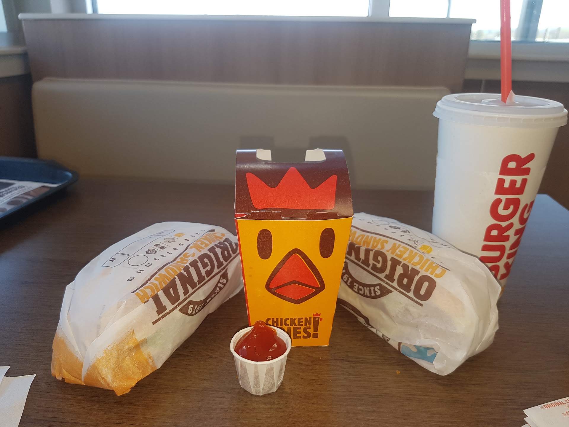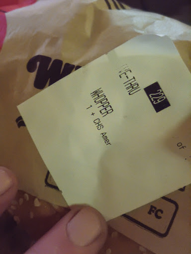 Fast, friendly and polite service. Our "to-go" bag had both napkins and ketchup. That's important to me. Forget the napkins, ketchup, or other condiments and you automatically lose a star. Food was cooked correctly and it was hot. Whopper Junior was tasty and just like it's larger counterpart.