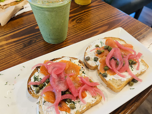 Read moreThe only reason I’m giving this a 3 star is the price. My order for my wife toddler and I consisted of: Cold Immunity Smoothie $12.00 Whether you're looking for something refreshing or you're looking to refresh your immune system - the Cold Immunity Smoothie will have… Sun Glow $10.00 Banana, strawberry, goji, acai, almond milk 16oz Almond Genovese Toast $16.00 Delight in a taste of Italy with our Genovese toast. Fresh pesto is spread on two pieces of locally made sourdough toast then topped with a… Sourdough New Yorker $20.00 Homemade whipped cream cheese is spread on two pieces of locally made sourdough toast, topped with cold-smoked lox, capers, homemade… Sourdough Chips ($2.00) Sandwiches $9.00 Cuban- homemade Dijon aioli, thin sliced dill pickles, Swiss cheese, ham, baguette Turkey- homemade garlic aioli, cucumber, Swiss cheese,… Roasted Turkey Bee Green $11.00 Mango, avocado, spinach, spirulina, honey, bee pollen garnish, almond milk 16oz Almond The total after a 15% tip was $94! *food: great but not worth the price tag. The smoothies Not to bad but one smoothie couldn’t be finished because they added way too much much of a spice that made it burn going down. *service: average *atmosphere: typical cafe vibe however didn’t offer anything for kids to really do dispute having a half acre of land with nothing on it but some storm drains and a ramp...