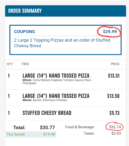Read moreOrdered 2 pizzas carry out on the app. It said 15-20 minutes. I waited 20 minutes and drove to the parking lot. I waited there another 20 minutes until my order was finally marked ready. I walked in and told them I wanted to pick up my order and they said it was still in the oven. I saw the guy in the back cutting one of my pizzas, so they obviously marked it ready when it wasn’t. I finally grabbed them and headed home. When I drove 15 minutes home I opened up the pizzas and realized one of them was the wrong pie. When we called dominoes, they kept pretending like they couldn’t hear us on the phone and were extremely rude and “too busy” to talk. All this and the two pizzas were $53 total! For this garbage and for it to be late and wrong…needless to say we will never eat dominos again