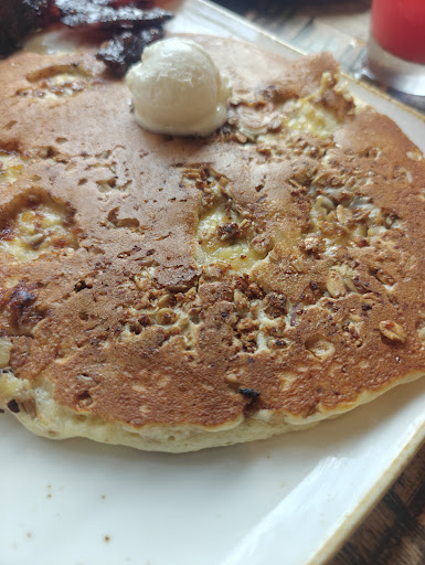 Food is good but had the worst/ most strange experience here today. My husband and I came here for a nice breakfast. I ordered 1 pancake. 1 pancake that's it. My husband's food which was way more complex came out first and I had to wait on my 1 pancake to come out. They finally brought my food but it was a waffle. No big deal I should have just ate it but I told them I ordered a pancake. Took another 5-10 min to get what I ordered to begin with. By this time my husband was done eating which is fine he shouldn't have to wait and I told him to not wait for me. My pancake finally came. It was good I'm not going to lie but not worth the hastle. As I am eating i see a man who works there taking a photo of me or a photo that happens to have me in it!!!! Pointing his phone directly towards me and almost trying to be sneaky about it. I told my husband and as my husband looks at him he puts his phone down. My husband asked our waitress about it and she told said man who may be the manager or owner? He tried to explain how he didn't but still..... people dont want phones pointed towards them while they eat or without their permission to take a photo. He said I wasn't in it but we both watched the camera pointing directly towards me. Im not sure how I wouldn't be in it. He offered to show us but at that point we just wanted to leave. How weird. And then when I go to check out they tried to charge me for the waffle I didn't order which was more expensive. Overall I felt like I was being pranked with how bad the experience was. I originally put 1 star but felt that may be unfair due to the fact the food was good and our...