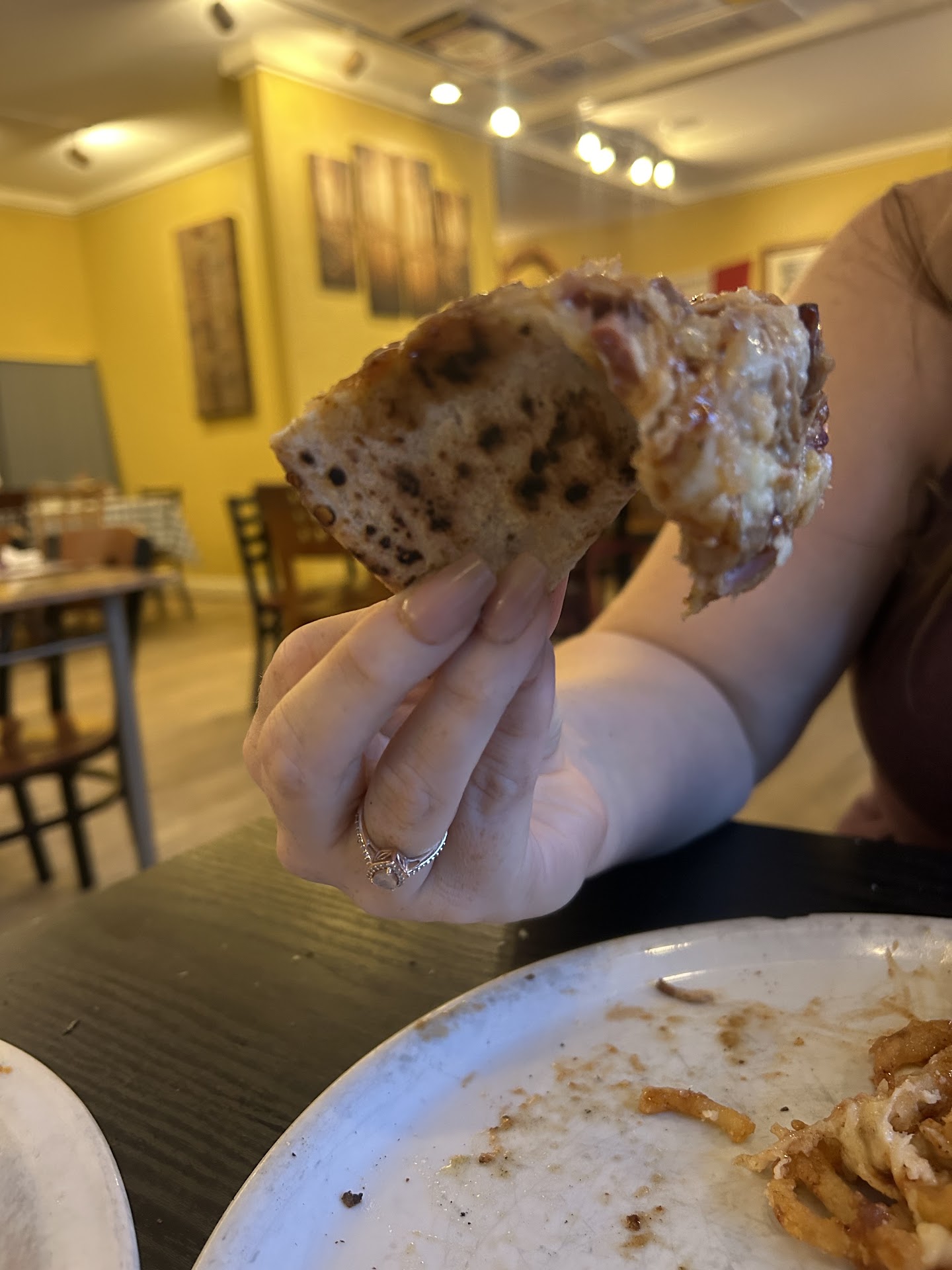The Good: The pizzas were thin, crispy and generally what we expected from a wood-fire. The pulled pork was good. The onion straws were above average as an appetizer. Corn bread was moist, sweet and very good. Mac and cheese side was on par as well.
