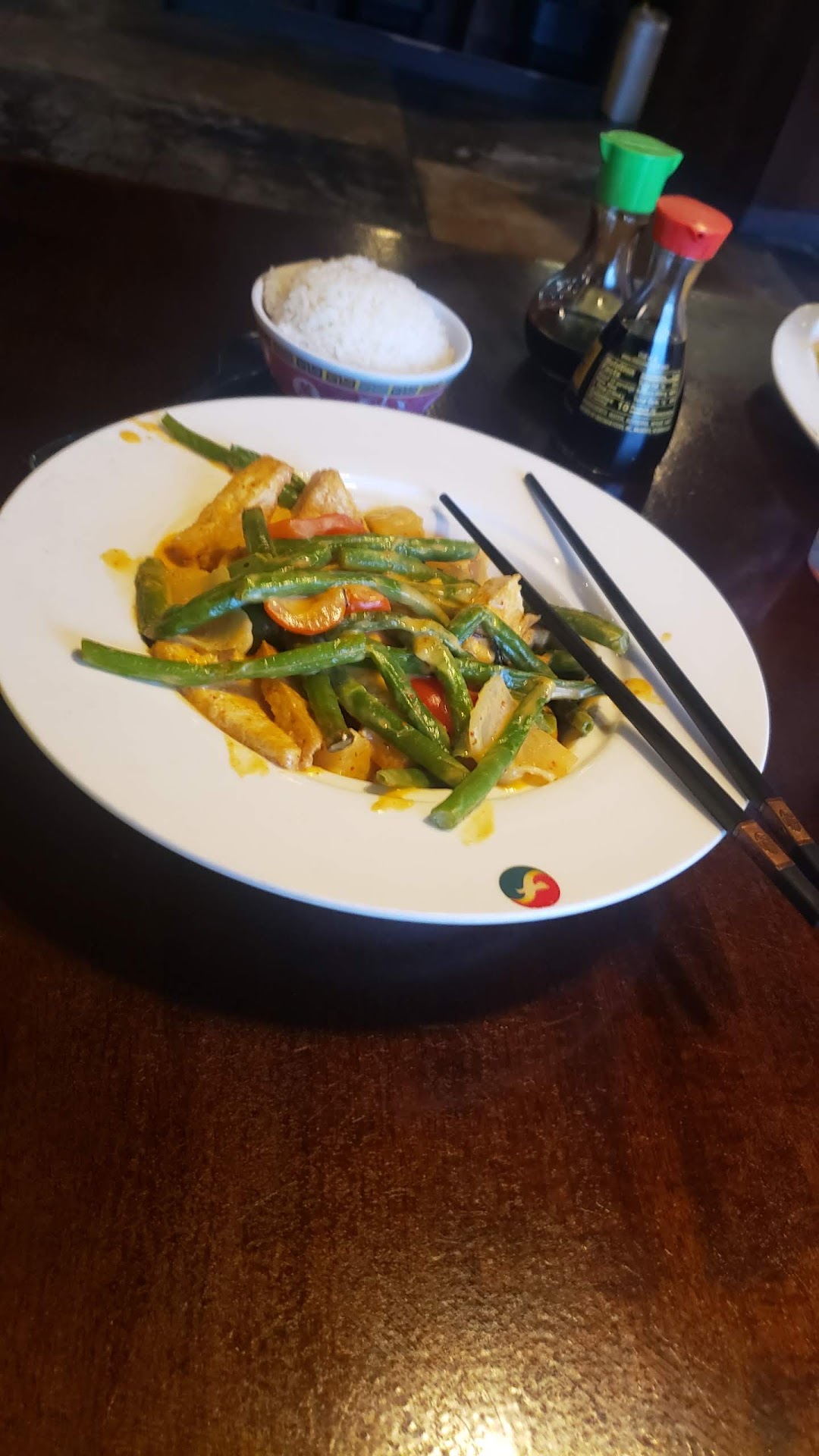 I had the curry tofu. Plenty of green beans and tofu, also pepper and pineapple. Wasn't crazy about the pineapple, but it was part of the dish. Wasn't off-putting, just could have done without it and they probably would have left it out if I'd requested. Server also offer me the lunch special but I didn't care anything about eggroll or springroll.