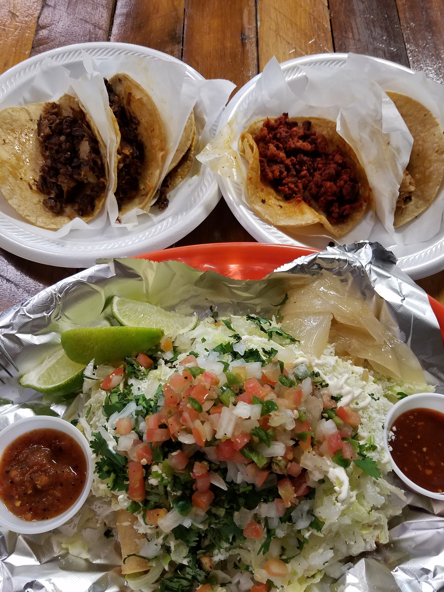 The one thing that shocked me was when I when around a corner to look closely at the food menu and I almost kicked a baby that was laying in his car carrier on the floor, half way under the table. Apparently it belong to the lady in the kitchen. We got tacos, they were ok but one thing that disappointed us was the meat portion. One taco looked like it had 1 table spoon of meat and the others were pretty small too.