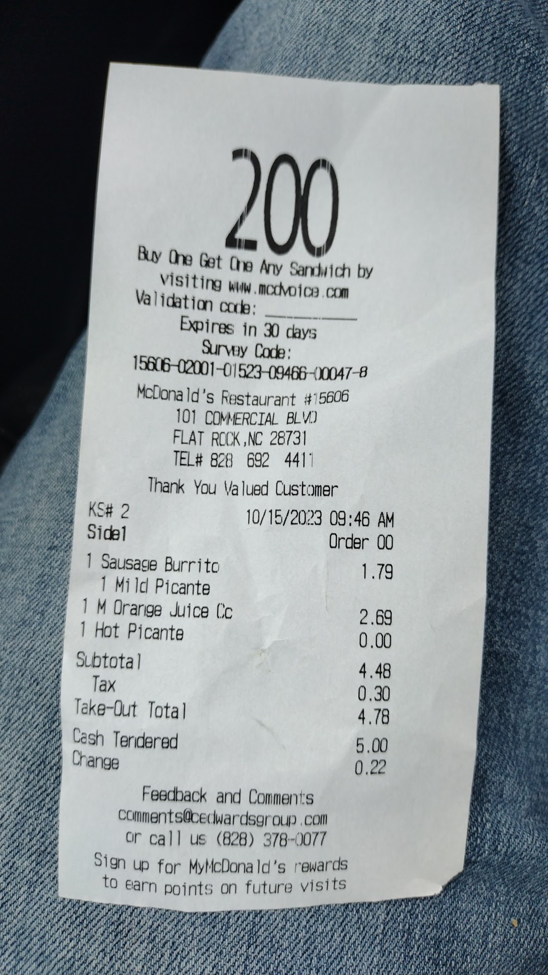 Read moreThe young man who took my order does not listen to his customers. I ordered a number 7 breakfast meal and what he rang me in for was 1 breakfast burrito and one medium orange juice. I give up on this place ... Never giving my money to this location AGAIN!!!! Aug 3rd 2024. Here I go again. I went to the drive thru at around 11:30 pm and I asked for a double cheeseburger meal. The guy asked me if I wanted a medium or large meal. I said small ... 😂 He rang me up individually as I was looking at the drive thru board and I got to thinking, that's not a meal ... So I drove up to the 1st window and asked why my meal was rung up separately and he said because they don't have a meal and I said well why didn't you say that to begin with? What an idiot and very deceiving until I called him out on it if I could give zero stars on this location I would give a -10 star every time I go through this drive through they can pretty much never get it right and apparently the owner really doesn't care because he I don't see him responding to any of his reviews. August 16th of 2024 I just went to the drive-thru to order some food on a Friday night and they close at 11:00 p.m....