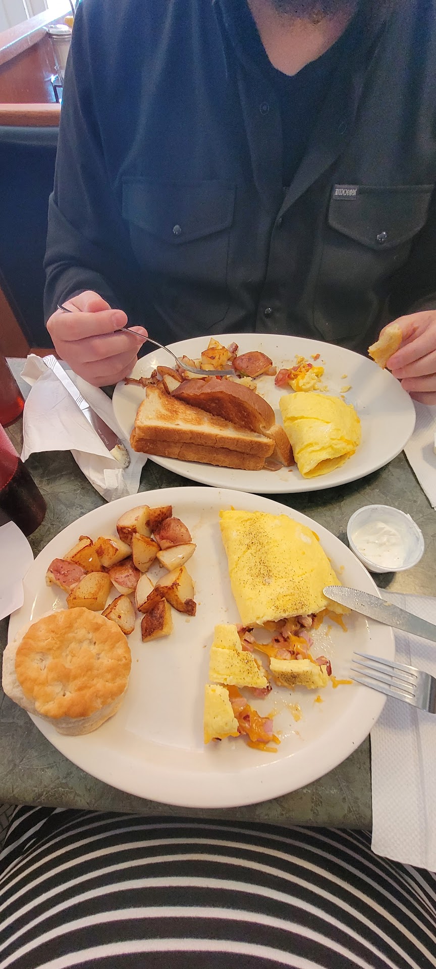 Read moreHad breakfast there and ordered 2 meals for take out, got home and realized they mixed up the take out order. Called them and was told it would be ready if I came back. I drove back into town to pick it up and they had it messed up again. At this point I told them I think I should get my money back or at least my tip back as they can’t seem to get an order right and I had to take 30 min to drive back and then still had to wait. Manager guy threw a handful of cash at me ( he literally grabbed cash from the drawer and threw it over the counter at me, then tried to grab it back from me) He was very aggressive, saying he was an ex cop and that they would call the police. I didn’t understand why he got so upset and tried to calm him down. He was calling me a fraud and threatening me when I left.
