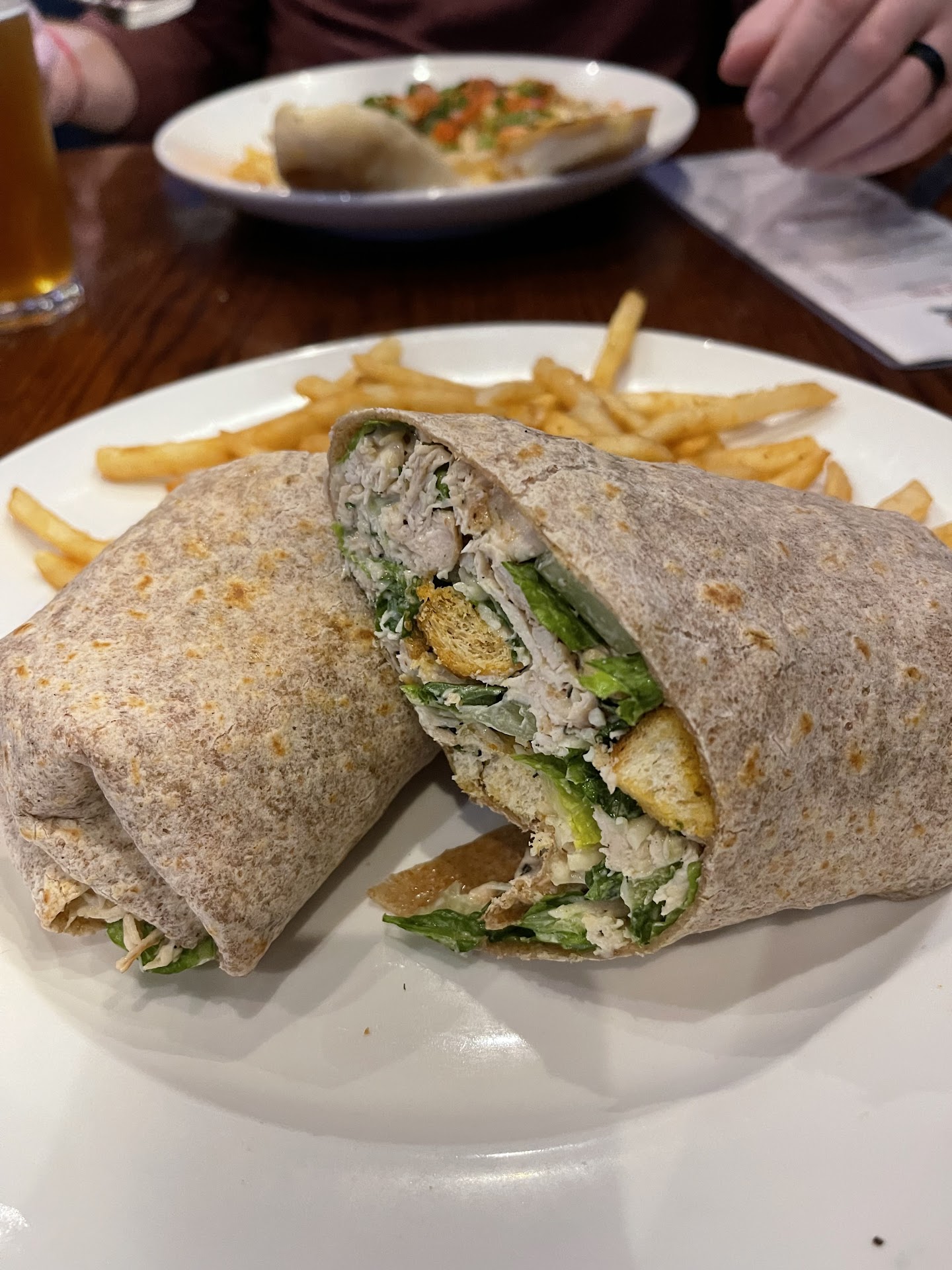 Food was iffy. My chicken nachos was eh, my wife's burger tasted great, veggie pizza was ok, fried pickles ok, chicken wings were good and the chicken tenders were mostly all breading with small amounts of chicken. So nothing special or exciting.