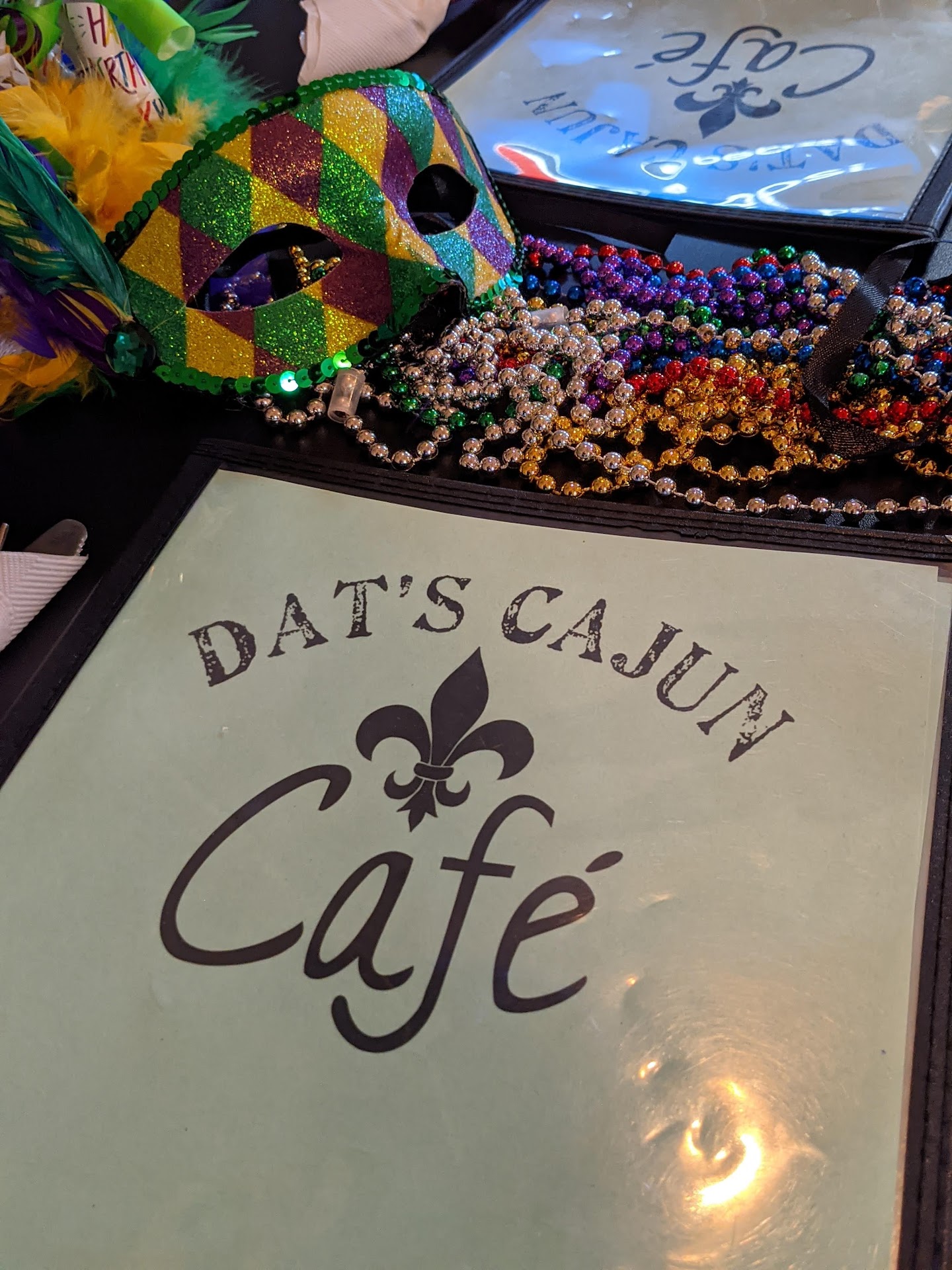 Read moreFinally got our chance to dine at Dat's Cajun Cafe and they didn't disappoint. Friendly greeting on our way in and excellent service throughout our meal. I spent my first 23 years in Uptown New Orleans and found the menu included many of my lifelong favorites. I had the Gumbo and it was delicious. No skimping on portions here and if you're expecting a bowl of rice and gravy with a few things added think again. This bowl is full of goodness with tons of shrimp, sausage, chicken, and some crawfish tails tossed in as a little lagniappe! And fried catfish is a side??? Yes please! My wife had the Roast Beef Po-Boy and it was true NOLA style with debris. (grab some napkins). I was able to wash my meal down with a cold Abita Amber! A treat cuz they are hard to find here. Of course when we spotted Pecan Pie Bread Pudding on the special board we had to try it and we sure were glad we did! The whole time we were there my foot was tapping to some zydeco and more of the music enjoyed down on da bayou. Did I mention that the service was excellent? Friendly and attentive staff made sure we were well taken care of. Looking forward...
