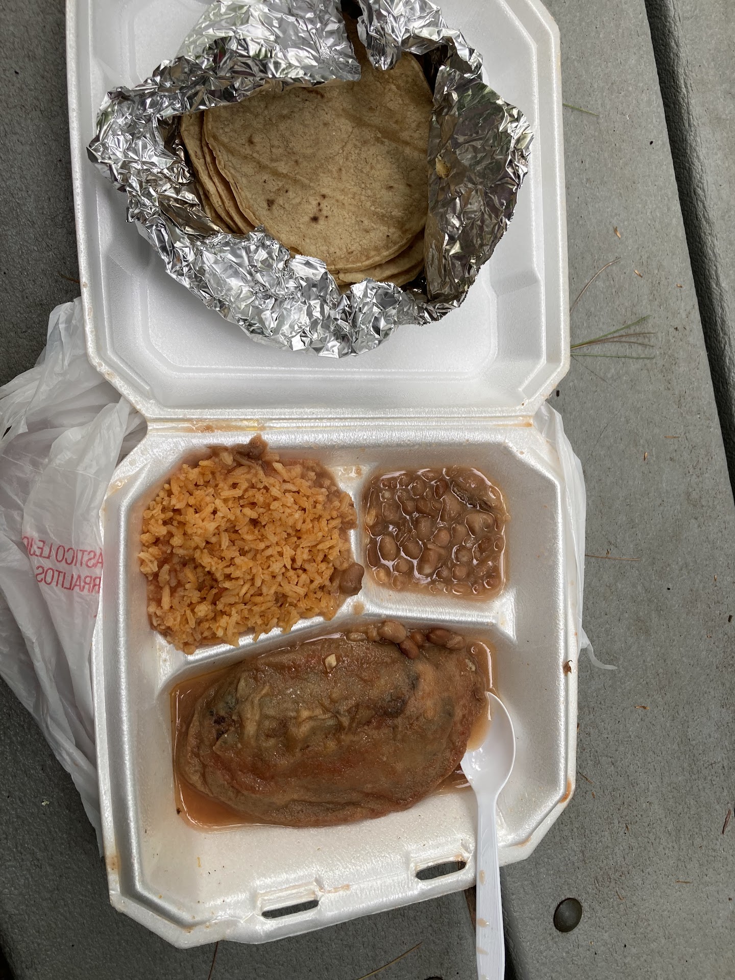 I tried the chile relleno and it was delicious 😋!! I want to try the beef and potatoes next time. Tortillas are fresh and delicious.
