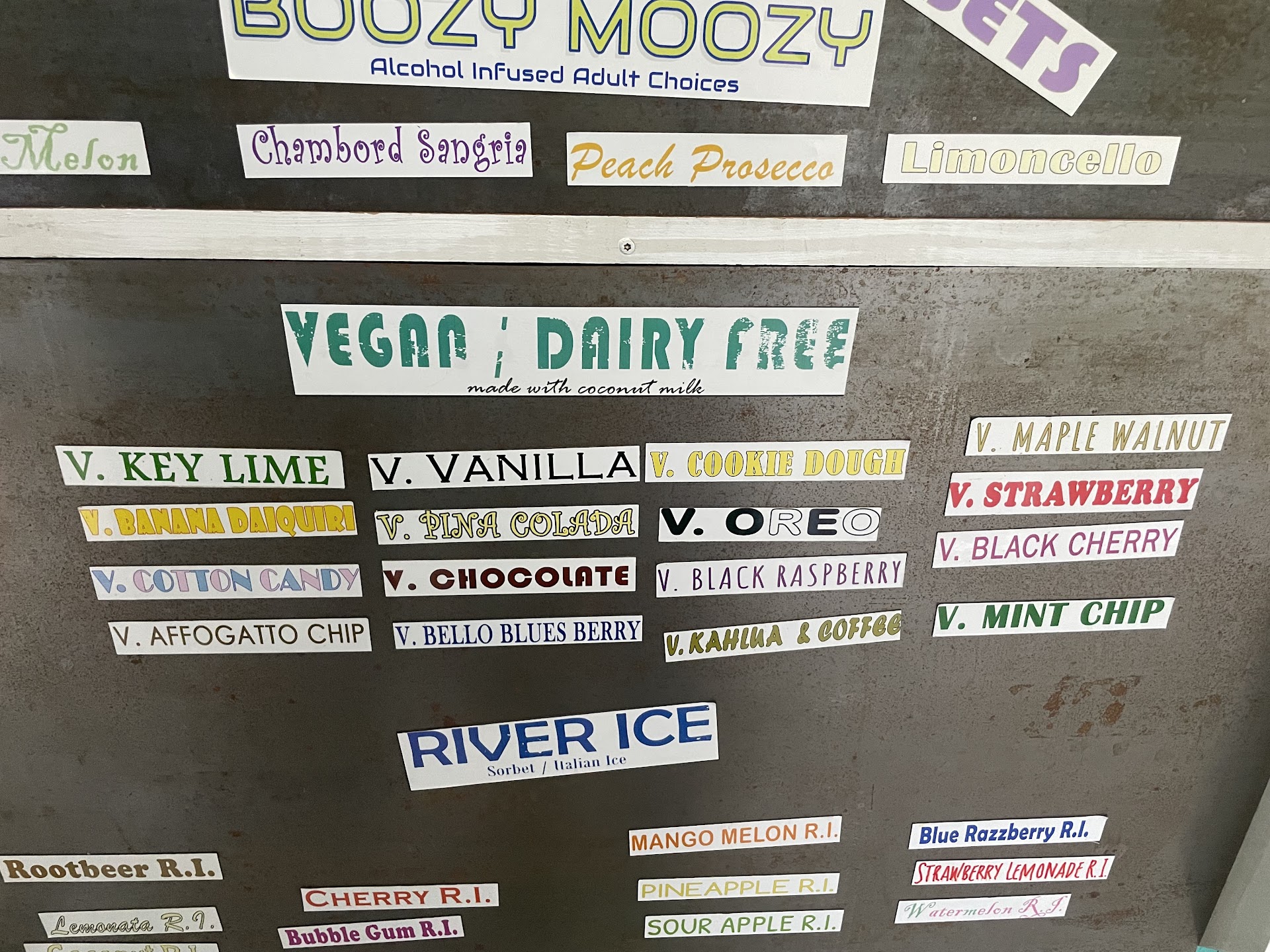 I was thrilled to discover this ice cream shop and its LARGE variety of vegan/non dairy ice cream! The menu clearly distinguishes vegan options and I love that there is a large amount of vegan ice creams and not only sorbets.
