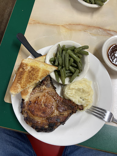 Enroute from Amarillo to Trophy Club Texas. This roadside diner popped up on Google Maps. The SE highway direction we were on , I don't recall any road sign indication the Diner was near other then we were on the lookout for it as we were driving and spotted it across on the other side of the split highway. Took the median road crossing the highway and glad we stopped ! Was greeted as we entered the Diner and we both ordered the Pork Chops. They were cooked to perfection and delicious. Sides complimented the Pork very fine. Not certain there really was a rattler in the cage and wasn't going to get any closer...