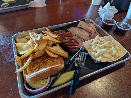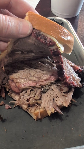 The Big Jake was everything it was billed as-- a pile of meat on Texas toast size sourdough slices. The sliced brisket was...amazing. Like top three on my list delicious. Moist, great bark, lots of flavor without the sodium overload. Hints of smoke without over powering. While I didn't get the ribs, I can only imagine how fantastic those must be, if the brisket was an indication.