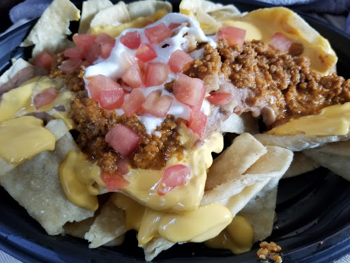 Nacho box we ordered had all the ingredients piled up on like seven chips in the center rather than actually on the chips....causing the toppings to stick to the box...perhaps an effect of the heat in the kitchen as the employees did not particularly look comfortable having to work in those conditions...