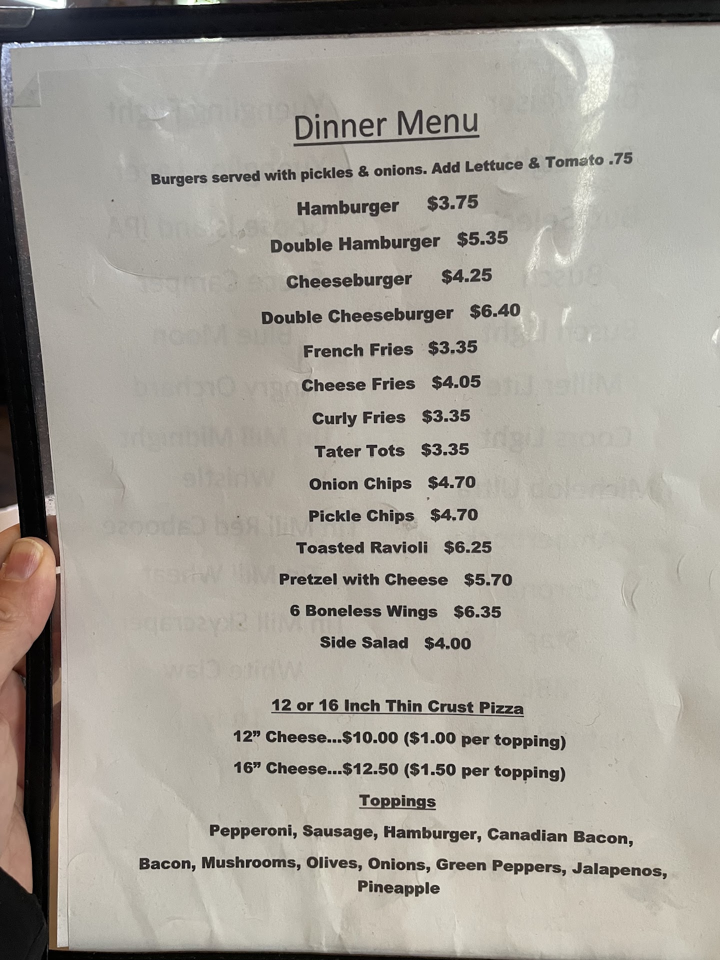 This will always be a place that comes to mind when someone says “dive bar”. We had a breakdown in Hermann and where looking for a meal and drink while waiting for a tow. The atmosphere sucks (unless you’re a bar fly). The music is way loud. The service is nonexistent unless you go to the bar. The food is quite inexpensive and it is decent. Not fantastic but it’s decent for bar food. The bartender looked at me like I was nuts when I asked if they had any beer other than Bud light or Coors. She ended up producing a bottle of lager from a local brewery although she couldn’t tell me if it was a lager or an ale or what it was called. It wasn’t very good but it was wet so I drank it. I would venture to say if you wanted alcohol beyond a jack and coke or fireball shots you would probably be met with the same solution. If you like dive bars with cheap food a limited selection of booze and a jukebox this place would...