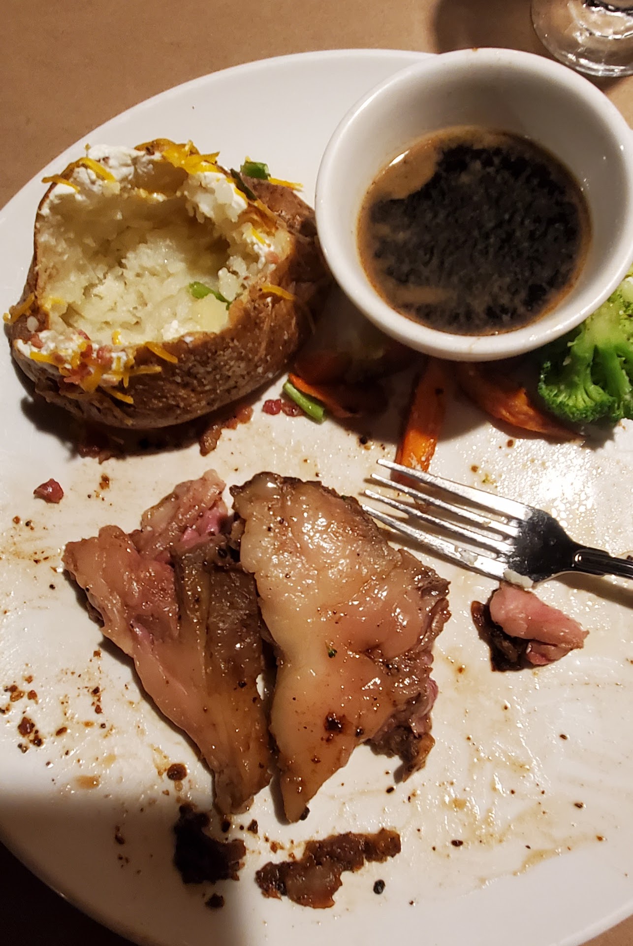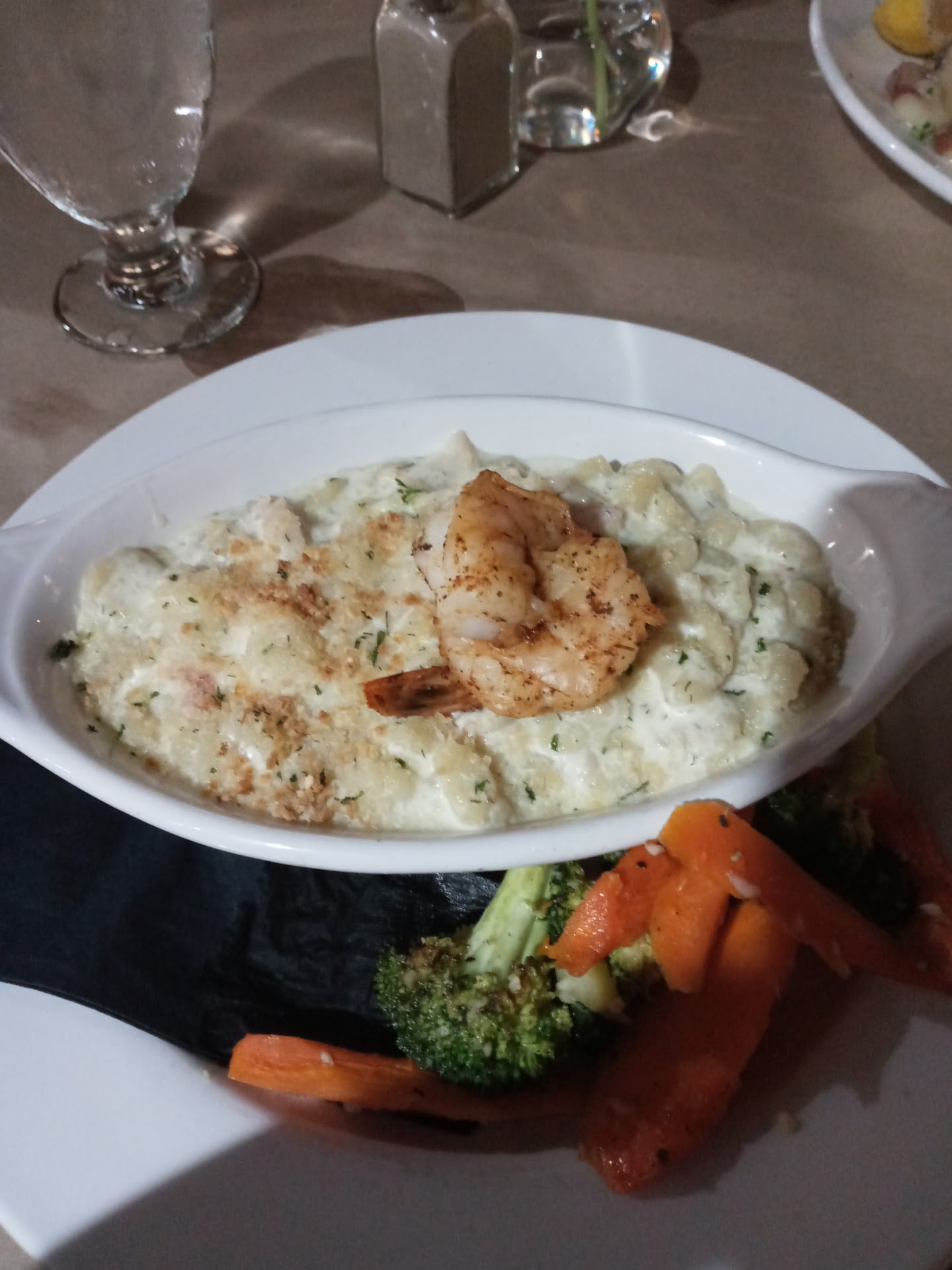 Others at my table got burgers (perfectly cooked to order as one ordered it medium and was served a pink burger and one ordered well done and got it well done), seafood platter, prime rib (she said it was the best prime rib she'd ever had!), and chicken. I stole a French fry from my daughter and they were soo good--crispy, not greasy, and perfectly seasoned. Everyone was happy with their food. And our waitress, who not only was serving us and other tables in this side room we were in for larger groups, I also saw serving tables on the other side of the restaurant, was very good for how busy she was. When she wasn't sure about who had substituted something different (me, being a total Sally), came to confirm what it was before waiting for possibly the wrong thing being served. And when we hadn't had our teas refilled in a while (again, she was busy), she brought us a carafe of it so we wouldn't run out.