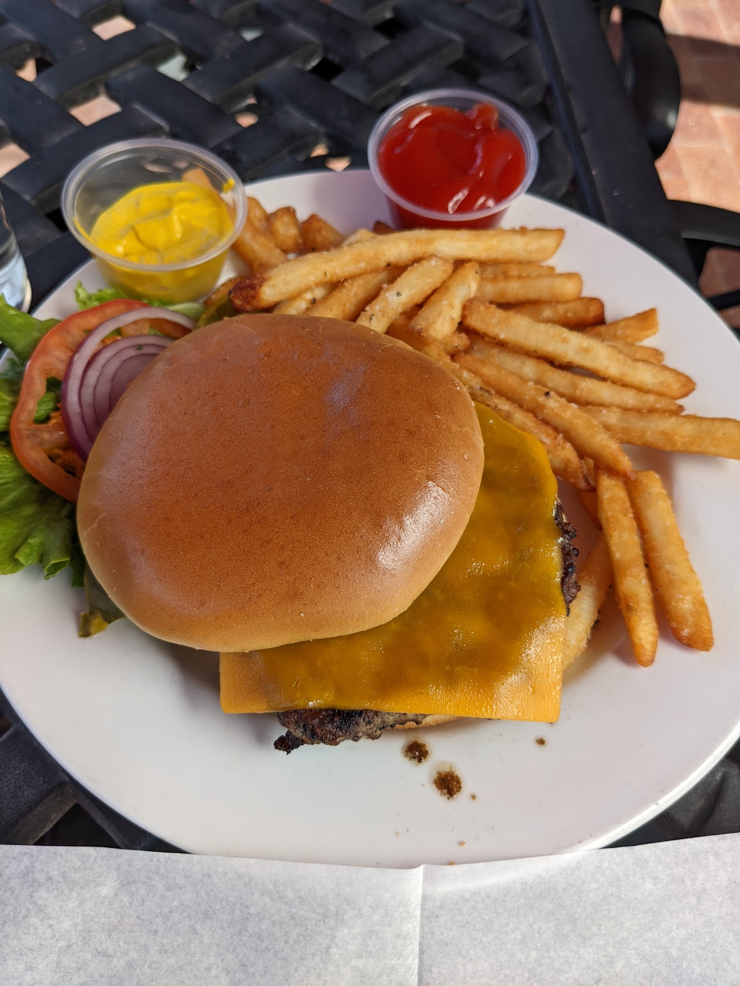 Starting with the good here: all the employees we encountered were friendly and helpful, and took extra steps to make our visit a pleasant one (thank you to everyone). The building is charming and the outdoor seating was arranged nicely. The "signature burger" was tasty. Things start to slide from here, sadly.