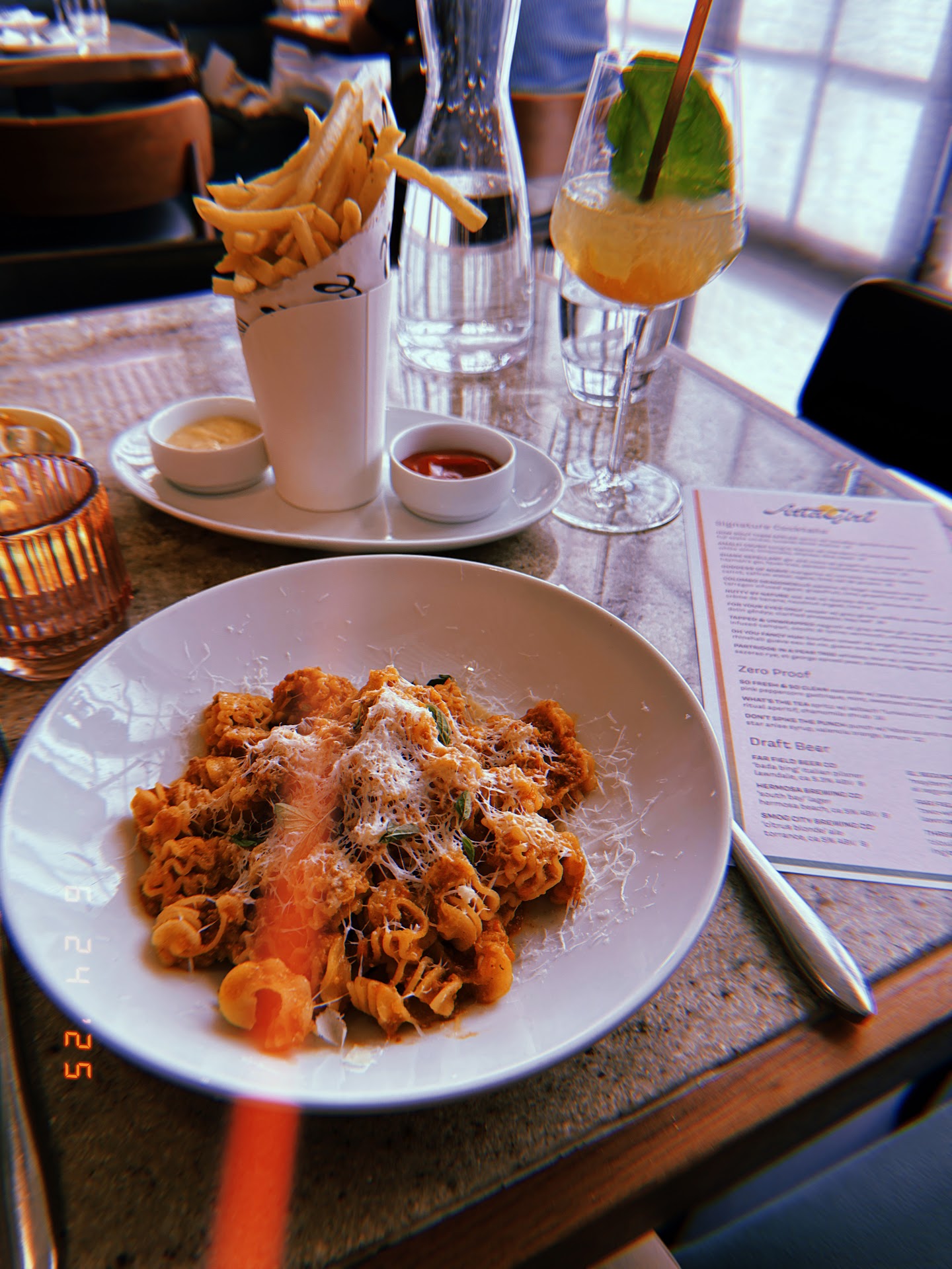 Read moreI didn’t even know I liked Mediterranean food until now. This was the best hummus and pita bread I’ve ever had before and I didn’t even know lamb would go well in a Bolognese but oh my god, this was a wonderful test to make sure I didn’t lose my sense of taste from COVID because the flavors of everything were out of this world. There were layers to them, like, umami but better. I’m Irish we are very particular about how we like our potatoes, and even the fries were cooked to perfection. The cocktail I had, the Amalfi Crush, was delicious: refreshing and flavorful without being overbearing or too weak. I don’t know how they made everything this good.