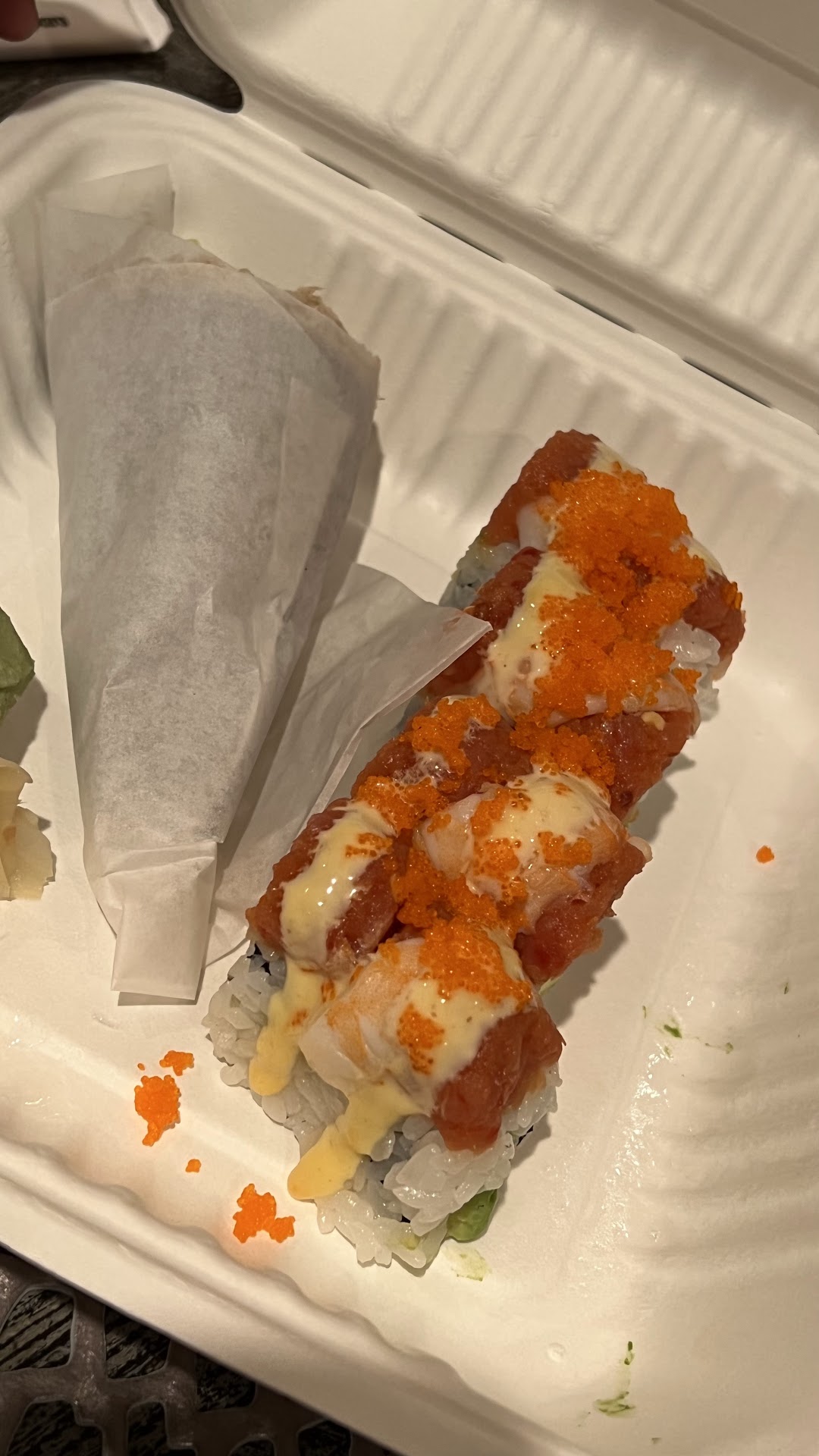 The sushi rice was so warm by the time I got my sushi plated it was already warm sushi. The Salmon Roe was just squishy and didn't have the right flavor. I was worried about eating my second piece that I will regret this sushi the next day. I was so turned off by it I didn't even finish the order and just paid and left, happy that I at least didn't get the items that they were out of at the time!