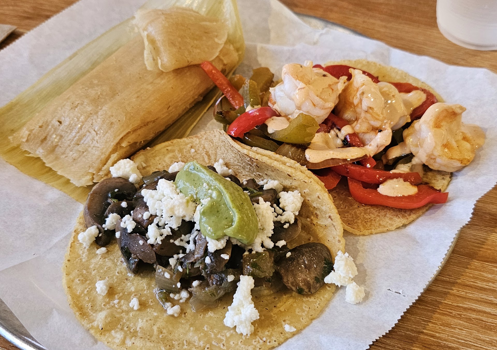 I ordered a tamale for the first time, which was honestly very disappointing. The corn one was incredibly dry, and my dad's meat one was as well. Then, after I made myself finish it just for the sake of finishing, I noticed there was gluten in the tamales, a new change.