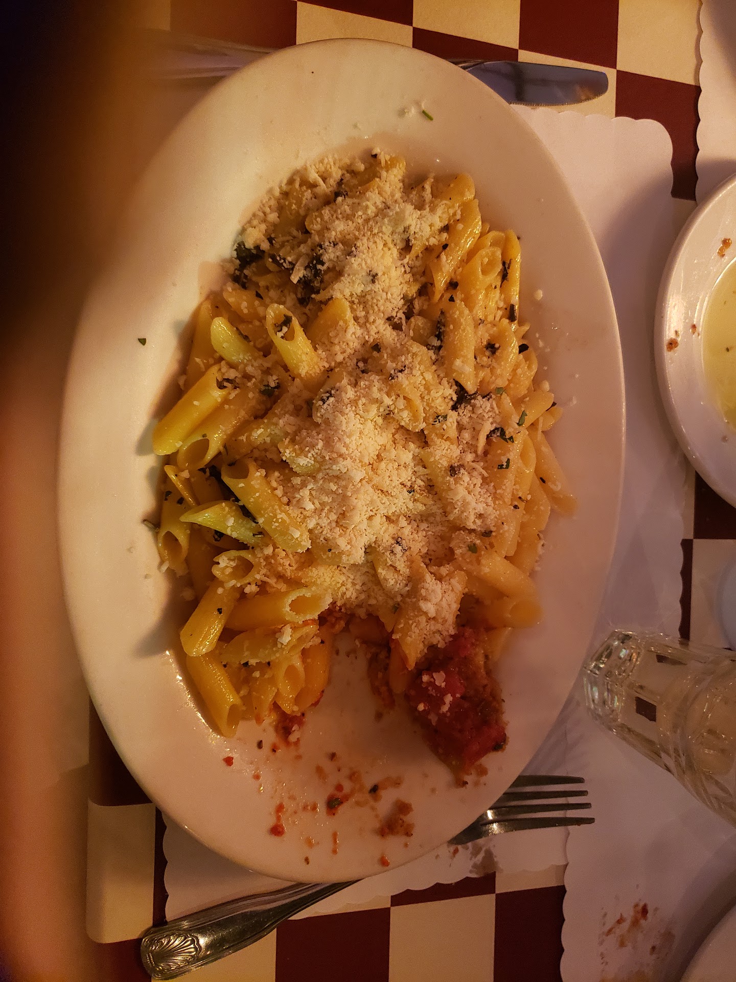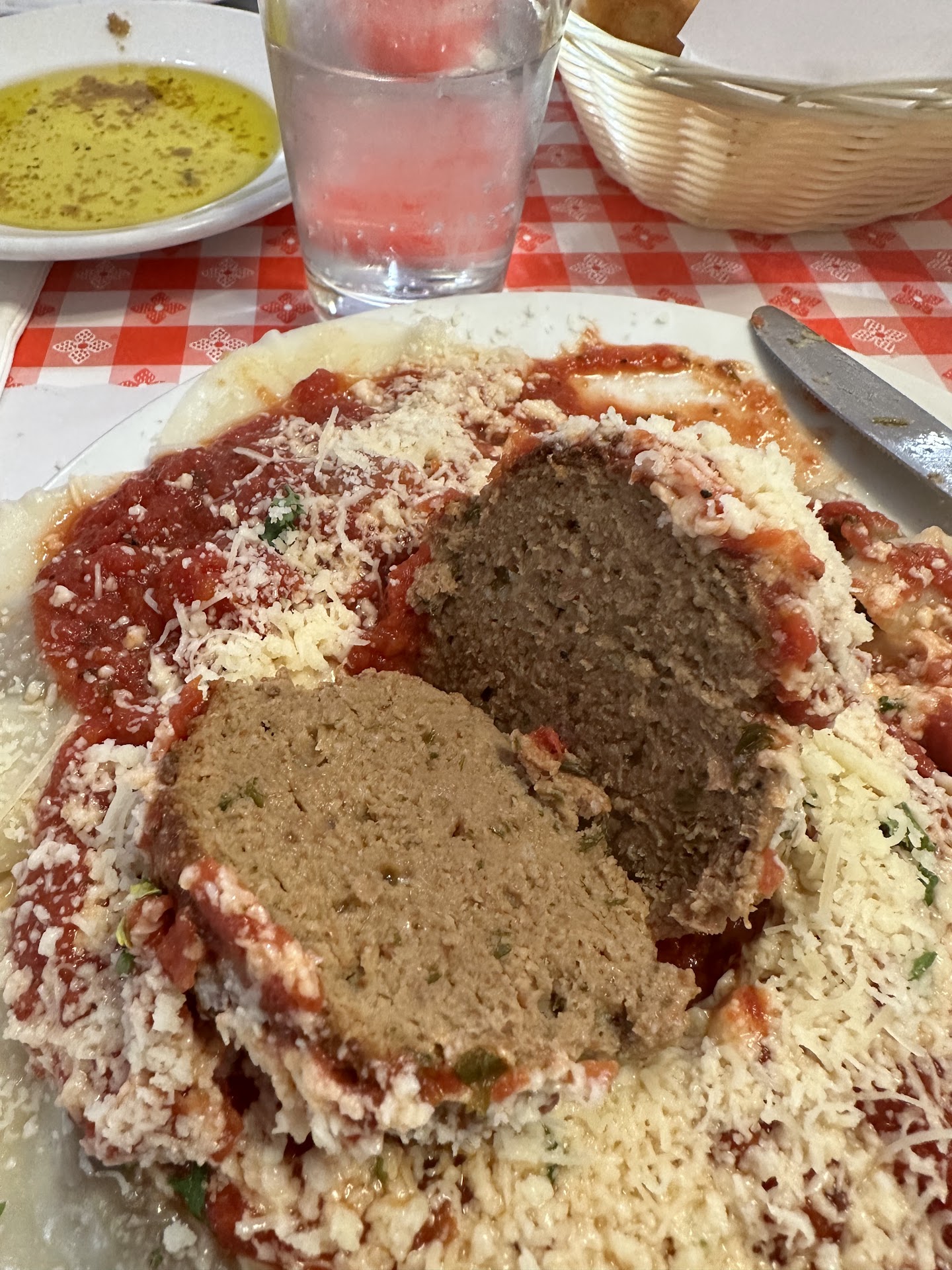 Read moreFirst visit to Mama D's. We think their unofficial motto has to be "kill'em with kindness!" Everyone gets a slab or two per person of superb fresh garlic bread. Eat-in or take-out doesn't matter. Also provided is garlic olive oil dipping sauce. We shared their large vegetarian pizza, to which we added meatballs. WONDERFUL!!! They serve a thin crust pizza that has an excellent tomato sauce, and the toppings were generously applied. We took half of it home for dinner the next day. They also give you complimentary, warm chocolate chip cookies at the end of your meal. Service is excellent. Staff is very friendly, especially at answering all food or specials of the day questions. Downside, it's a pretty small restaurant, but it is worth the wait. Amazing selection of dishes. Can't wait to come back!!! Had our anniversary dinner from here. We got Pat's Baked Clams as a starter. WONDERFUL! 12 garlicky breaded classic in a wine sauce. The sauce is perfectly soaked up with their fresh baked bread. We also split Edgar's Spinich Ravioli in a fresh tomato sauce. The Ravioli was impeccably fresh! We also split Renee's Eggplant Parmigan with an added meatball and sausage. All brilliant! We actually had the clams and Ravioli on one night and the eggplant and sausage and meatball on another day. Both split portions fed...