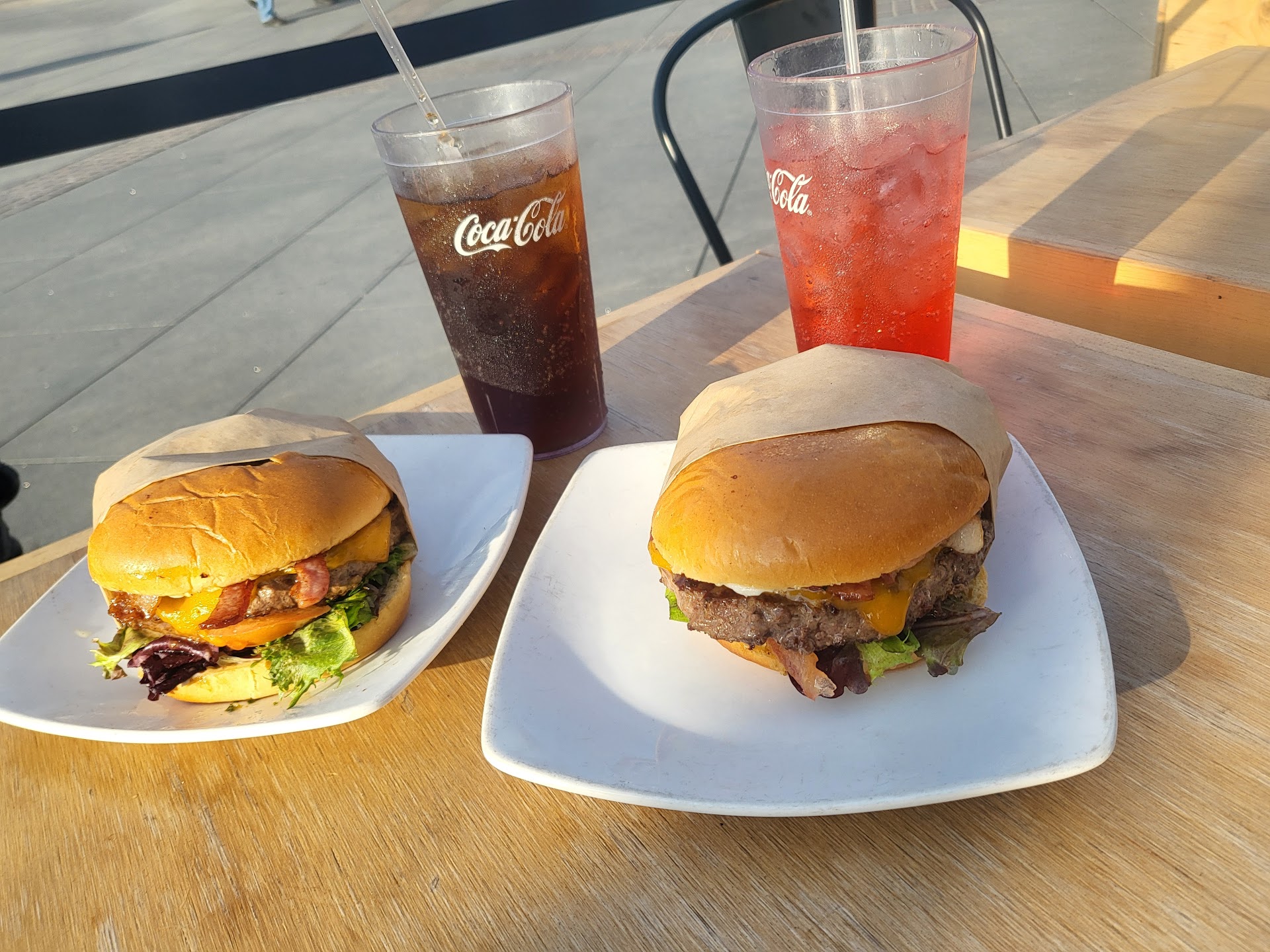 I seem to be drawn to places with bad service lately. Me, my wife and our two friends came here for some lunch at a time when the place was basically empty. We got to order fairly quickly and were served water right away. Then came the bad stuff. The place started crowding up about 15 minutes after the waitress took our orders, and we had to wait for 40 minutes, and ask about it twice, before we got our food. They also served two parties that were seated after us, before serving us. This was when we asked the first time, and got the answer "It's coming right up". 10 minutes later we still hadn't gotten our food, so we asked again, and then the guy went straight to the kitchen and got our plates. Weird thing is, our fries were all lukewarm, which to me makes it seem like they were already ready when we asked the first time.