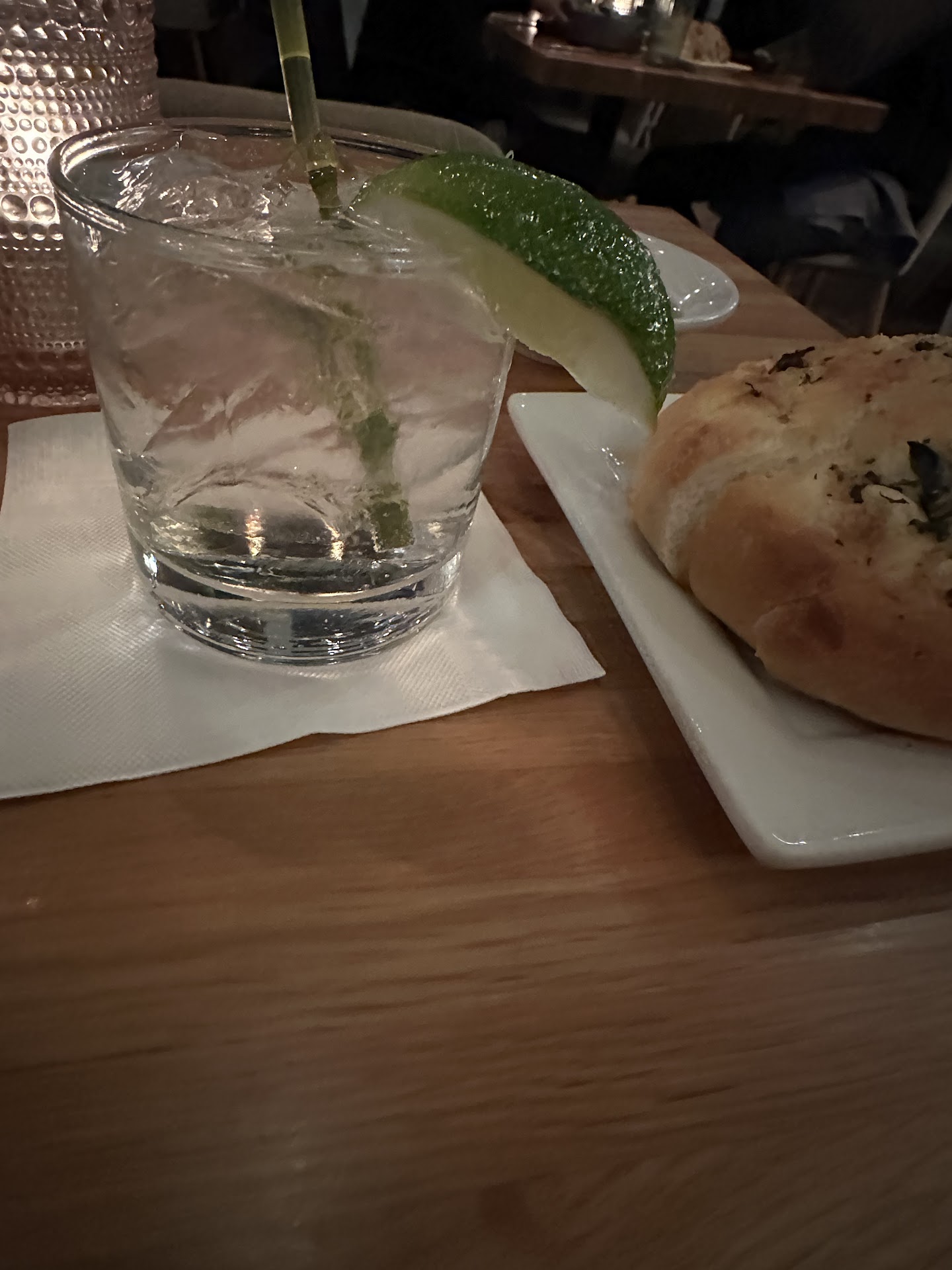 I started with a cocktail that was nicely balanced with a gin of the waiters recommendation. They brought out a freshly baked bread with cheese on top and an olive oil and balsamic dipping. So simple and so delicious.