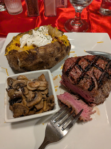 Read moreWe Set our reservations at 6 pm two weeks ago. table wasn't ready for 15 minutes because a large party came in and they had to move us. Hostess is young and seemed overwhelmed. She didn't deliver bad news well or listen to understand, only to respond. She forgot us and let 4 couple who arrived AFTER us be seated and asked us again if we had a reservation. Once seated our table cloth was extremely wrinkled without silver water or napkins and an unlit candle. Now the waitress was the best part of the night. I was angry coming in and she kept a positive happy upbeat attitude and it helped me change my mood. The menu was missing what sides they had so I had to ask. The filet mignon was great, it was seasoned well, cooked a little over my medium rare but it was delicious. The prime rib was nice and soft, not to fatty BUT it was sitting on a over done beef bullion, not Au Just. Now the sides, baked potatoes great. The mushrooms fillet mignon a special request so I don't want to comment on. The spinach is from a can. They were disgusting. The green beans were over seasoned in an herb I think thyme and under cooked. We didn't ask for the sides to be fixed because it was obvious there wasn't going to be a good alternative and they are included in the price of the meal. For our total of $150 with 2 drinks, it wasn't worth it. I won't return. I do need to say they have great potential they need to hire a better front house manager and revaluate their sides to offer...