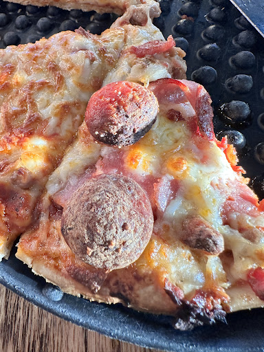 I knew the vegetarian pizza was my selection since I don't eat beef, pork or chicken, and let me tell you, it did not disappoint! The cheese blend was a delightful surprise; it didnât stretch in the usual way, which I found to be a huge plus. As a texture eater, I appreciate when everything on my plate stays togetherâit's like theyâre in a delicious relationship! Do not break your values.
