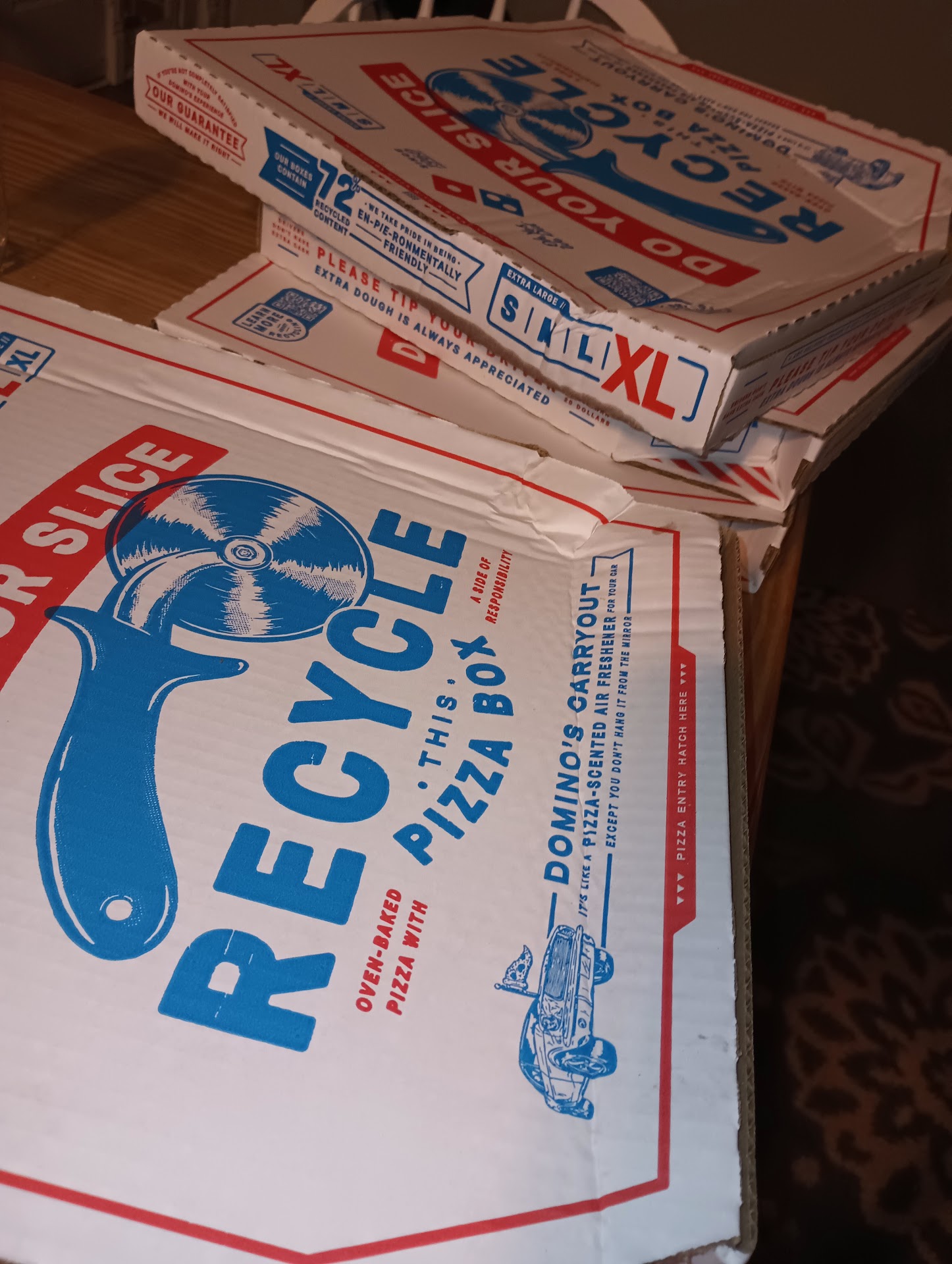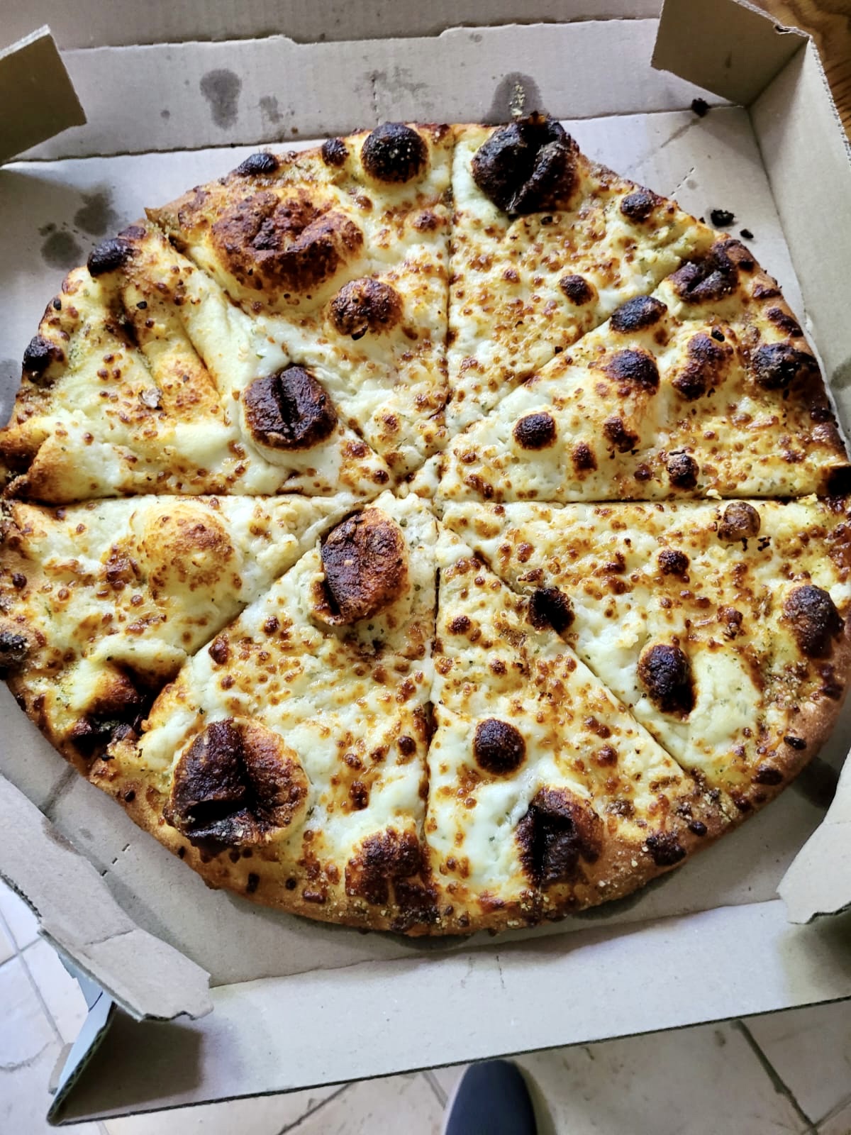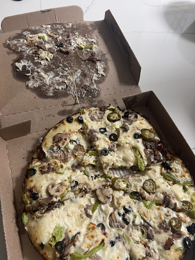 I wish I took pictures of the pizza inside. To bad I threw away all 5 pizzas because the whole situation was a mess. I have pictures of our brightly lit town house and the dark park she delivered to along with video surveillance of us chasing her down and watching her drive by us a good 15 times. I'd be more than happy to email...