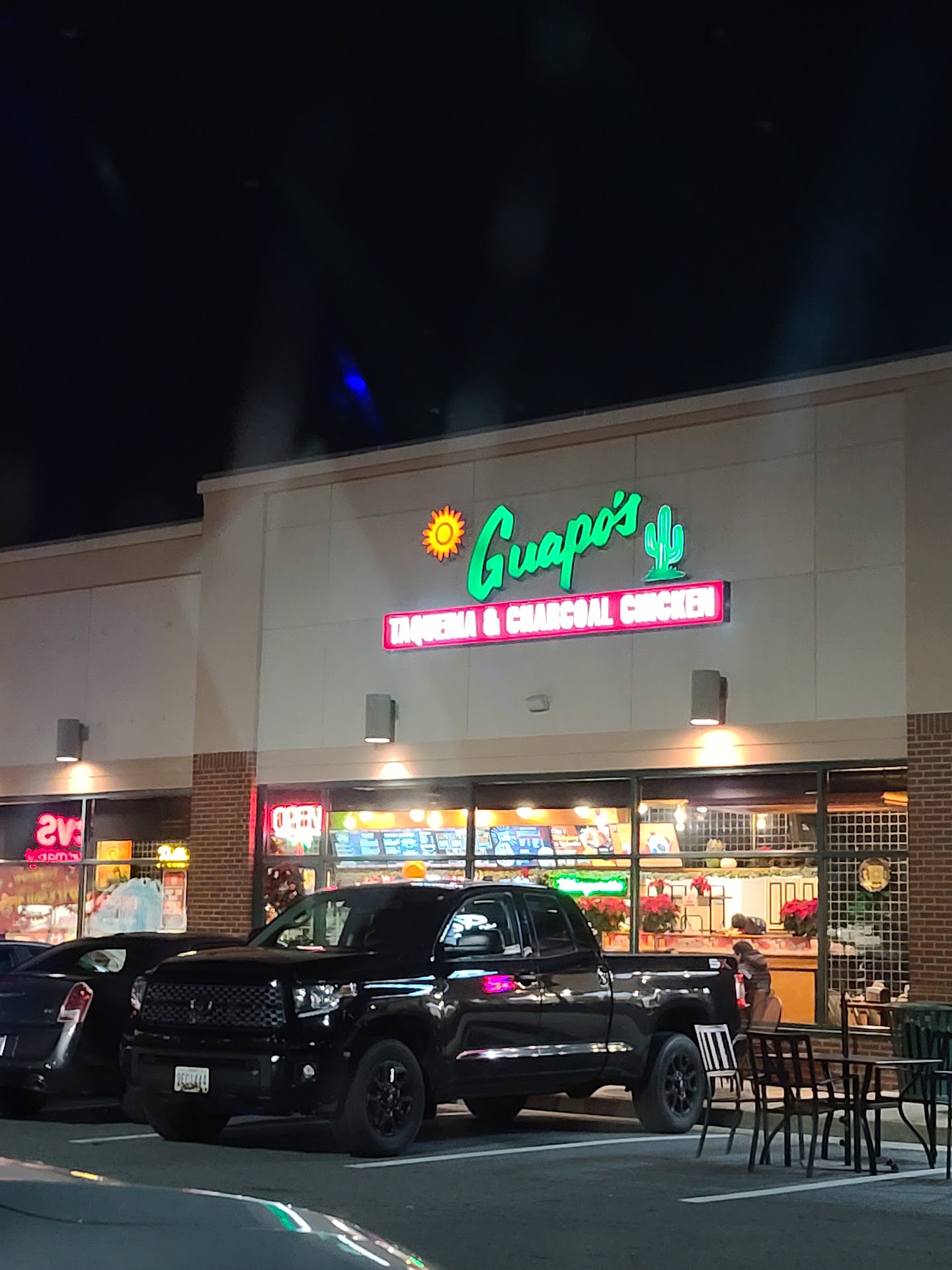 Read moreThis 5 star rating is long overdue. Every time I've gone to a Guapos, it's always a good experience and food great. This time at this location was a great experience with great food hands down. I've visited before, one in Woodbridge, VA and another in Manassas, VA. The business as a whole is consistent. I ordered combo #3 which included beans, Spanish rice, beef crunchy taco, chicken enchilada and 1/4 chicken grilled. My friend ordered #6 I believe. It was the beef, chicken and cheese enchilada plate. Ok so back to me, I asked for white meat for my chicken choice because it's easy to mess up white meat and have it dry. Boy was I wrong but right to put them to the test. Chicken was not dry. In fact, super juicy and flavorful! Steaming right on the plate so you can tell it was freshly freshly hot 😋. Normally I don't care too much about rice or beans to review but man were they a great complement to the rest of the dish. Not mushy and vegetables in the rice was appreciated as well. Now for that beef taco 🌮. This next statement is going to be a big allegation here but that beef taco was EASILY top 5 best crunchy taco I've ever had in my life! What makes it the best?? Well, I'm glad you asked. See, I worked at a Mexican restaurant before in Texas and I know beef tacos. This shell was fresh, not stale. Lettuce and cheese mix was also fresher and the beef itself, again hot to the temperature. The juice of the beef didn't over power the shell as sometimes folk do beef tacos but don't drain enough of the grease leaving the taco greasy and crunchy shell mushy and soft. At Guapos, this is not the case! Perfection to the level of allowed grease and idk about you but I like a little moisture to my beef so it worked just fine. Once you add a little of the green sauce (not slasa verde) it's another little green sauce they give you and man I wish I knew the name of it. I'll ask when I go back 🤭. But this sauce has a spicy kick and let me tell you, drop that on your taco or chicken, you wouldn't want to leave this place. Now sadly, I didn't care too much for the chicken enchilada. 😢 That to me was not as good as the other things on the plate. It's packed with cheese on the top and green sauce, (this time, probably salsa verde) of course on a corn tortilla. Still good but the chicken itself was a little tough to chew, slightly dry. Crazy right! You would think if the white meat 1/4 chicken was good then the chicken enchilada would pass said same test but no. Even still, 5 stars to you guys because it's been multiple tries for me and enjoyed each one. Also, my friend and I ordered at 3:11pm ish and food was at our table by 3:15. No lie! I even said, Wow, rapido!! To the server ☺. She even came picked our plates up when we were done like 30 min later as my friend and I sat and talked. Look man, clearly I can just keep going on and on about this place. Please try them!!!!...