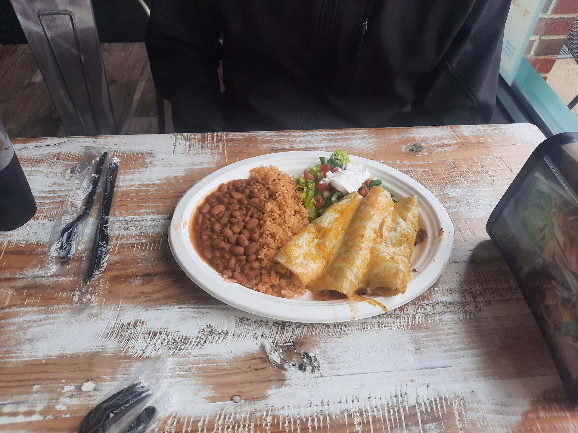 Read moreThis 5 star rating is long overdue. Every time I've gone to a Guapos, it's always a good experience and food great. This time at this location was a great experience with great food hands down. I've visited before, one in Woodbridge, VA and another in Manassas, VA. The business as a whole is consistent. I ordered combo #3 which included beans, Spanish rice, beef crunchy taco, chicken enchilada and 1/4 chicken grilled. My friend ordered #6 I believe. It was the beef, chicken and cheese enchilada plate. Ok so back to me, I asked for white meat for my chicken choice because it's easy to mess up white meat and have it dry. Boy was I wrong but right to put them to the test. Chicken was not dry. In fact, super juicy and flavorful! Steaming right on the plate so you can tell it was freshly freshly hot 😋. Normally I don't care too much about rice or beans to review but man were they a great complement to the rest of the dish. Not mushy and vegetables in the rice was appreciated as well. Now for that beef taco 🌮. This next statement is going to be a big allegation here but that beef taco was EASILY top 5 best crunchy taco I've ever had in my life! What makes it the best?? Well, I'm glad you asked. See, I worked at a Mexican restaurant before in Texas and I know beef tacos. This shell was fresh, not stale. Lettuce and cheese mix was also fresher and the beef itself, again hot to the temperature. The juice of the beef didn't over power the shell as sometimes folk do beef tacos but don't drain enough of the grease leaving the taco greasy and crunchy shell mushy and soft. At Guapos, this is not the case! Perfection to the level of allowed grease and idk about you but I like a little moisture to my beef so it worked just fine. Once you add a little of the green sauce (not slasa verde) it's another little green sauce they give you and man I wish I knew the name of it. I'll ask when I go back 🤭. But this sauce has a spicy kick and let me tell you, drop that on your taco or chicken, you wouldn't want to leave this place. Now sadly, I didn't care too much for the chicken enchilada. 😢 That to me was not as good as the other things on the plate. It's packed with cheese on the top and green sauce, (this time, probably salsa verde) of course on a corn tortilla. Still good but the chicken itself was a little tough to chew, slightly dry. Crazy right! You would think if the white meat 1/4 chicken was good then the chicken enchilada would pass said same test but no. Even still, 5 stars to you guys because it's been multiple tries for me and enjoyed each one. Also, my friend and I ordered at 3:11pm ish and food was at our table by 3:15. No lie! I even said, Wow, rapido!! To the server ☺. She even came picked our plates up when we were done like 30 min later as my friend and I sat and talked. Look man, clearly I can just keep going on and on about this place. Please try them!!!!...