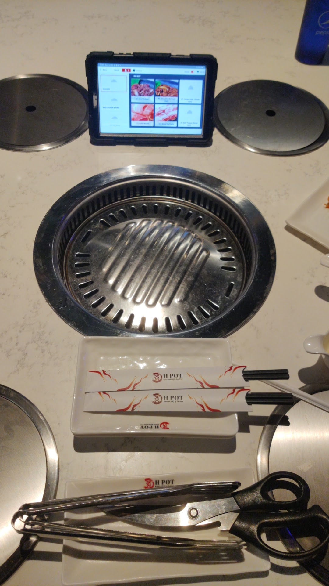 CONS: -Meat quality is extremely poor. Rough, chewy and improperly marinated. Tastes bad -Hot pot broth is okay. I would rate it a 6/10. It wasn't the greatest . -The buffet/bar was okay. No appetizers like fried foods (chicken wings, fried rice, French fries etc or additional foods that you can eat while waiting for food to cook ) -Missing things that we are accustomed to on a hot pot/bbq place such as proper spices to add to meats. They only had salt and pepper. -All tables have 6 individual soup burners but one very small circular grill for table. You would definitely be waiting time to eat for a bigger group. Might not get full by the time your 2 hours are up . -Food ordering was slow and often missed or wrong . -Make sure you use oil before adding meat to grill or it will burn and stick . -Vents not that strong causing you to walk out of restaurant smelling like BBQ (the bad smelling kind and not a delicious smell) -Complete copy of K Pot restaurants down to the ordering system, set up.